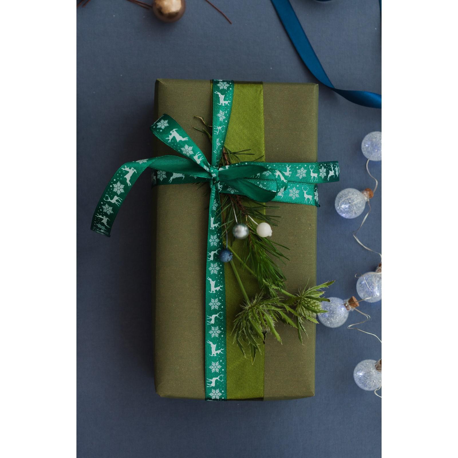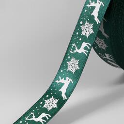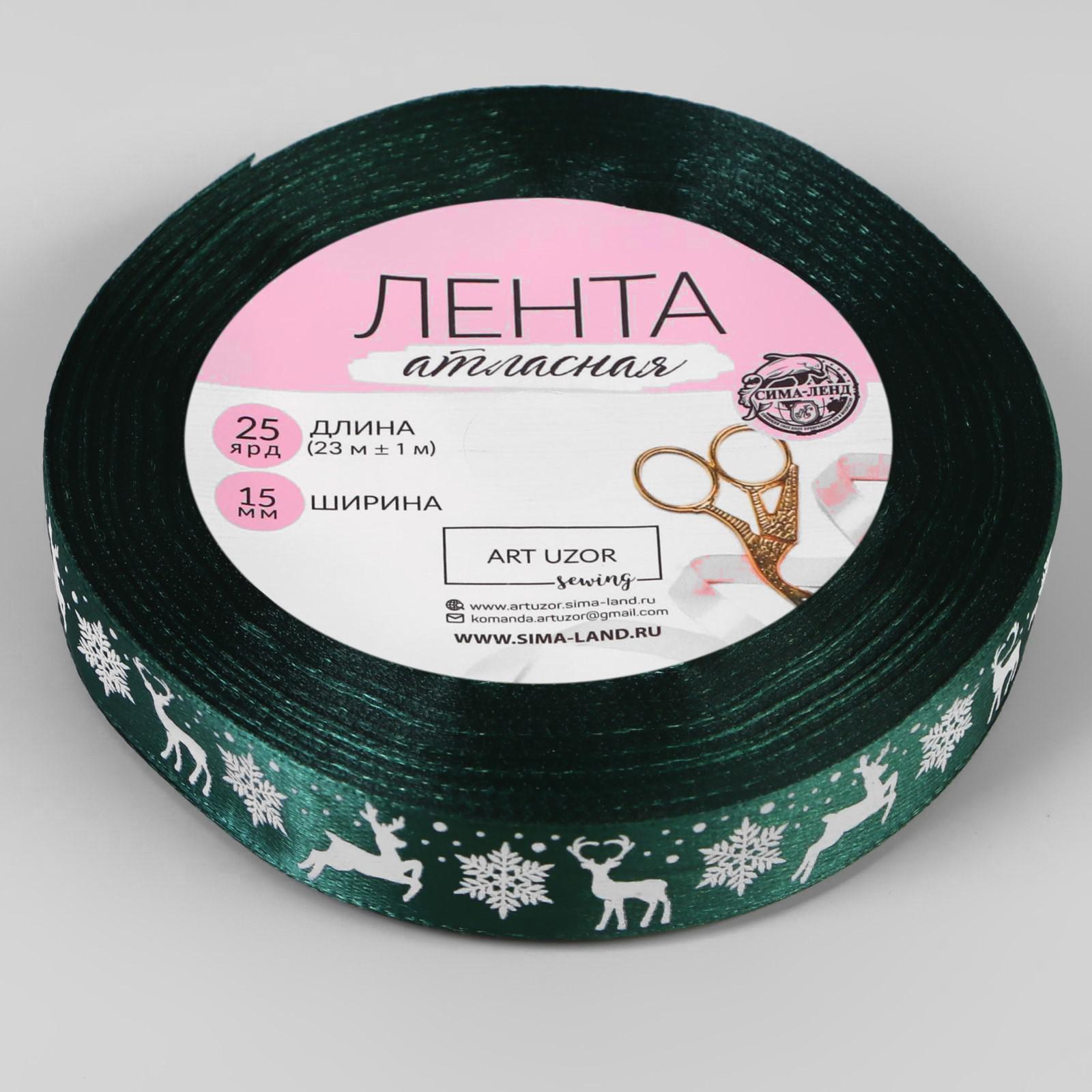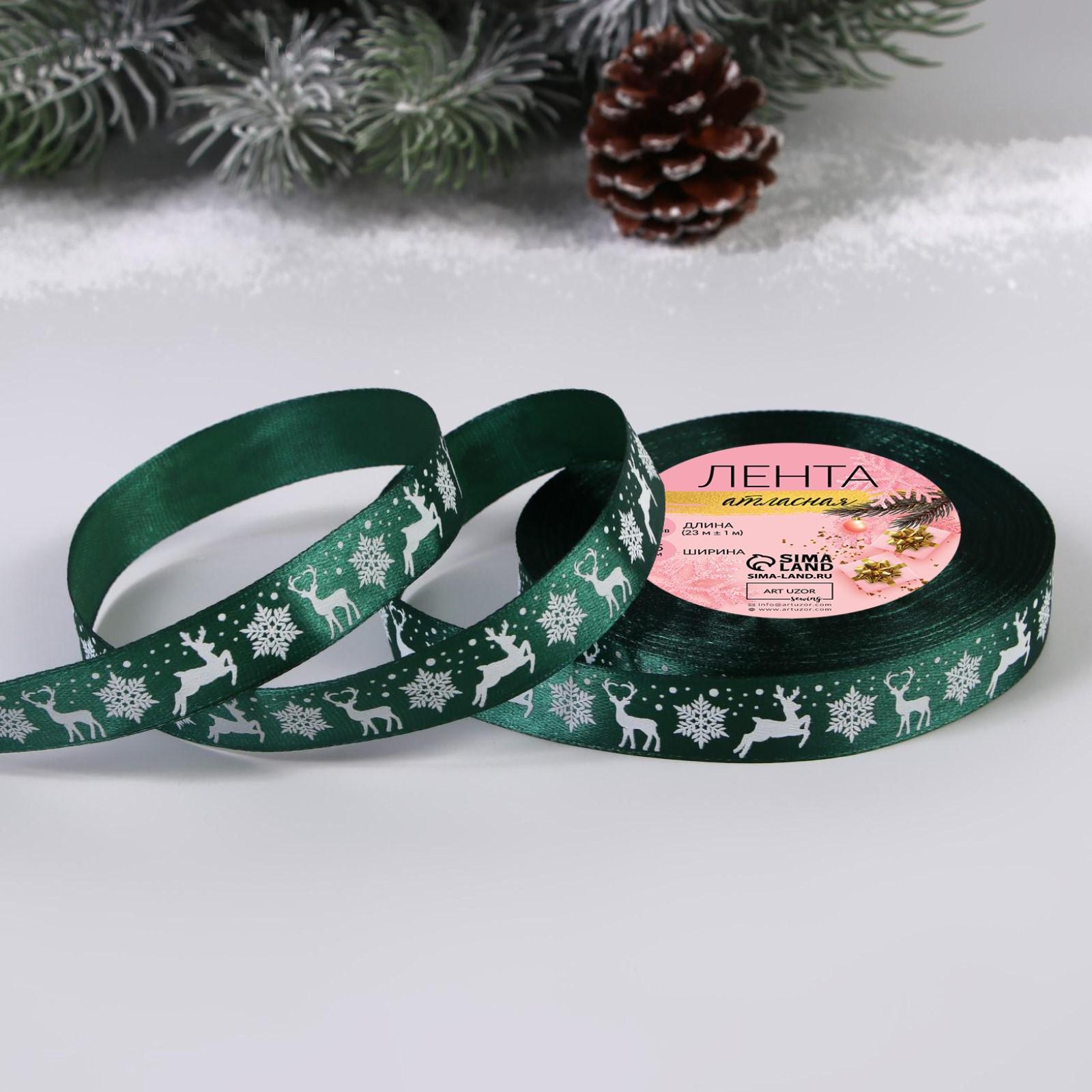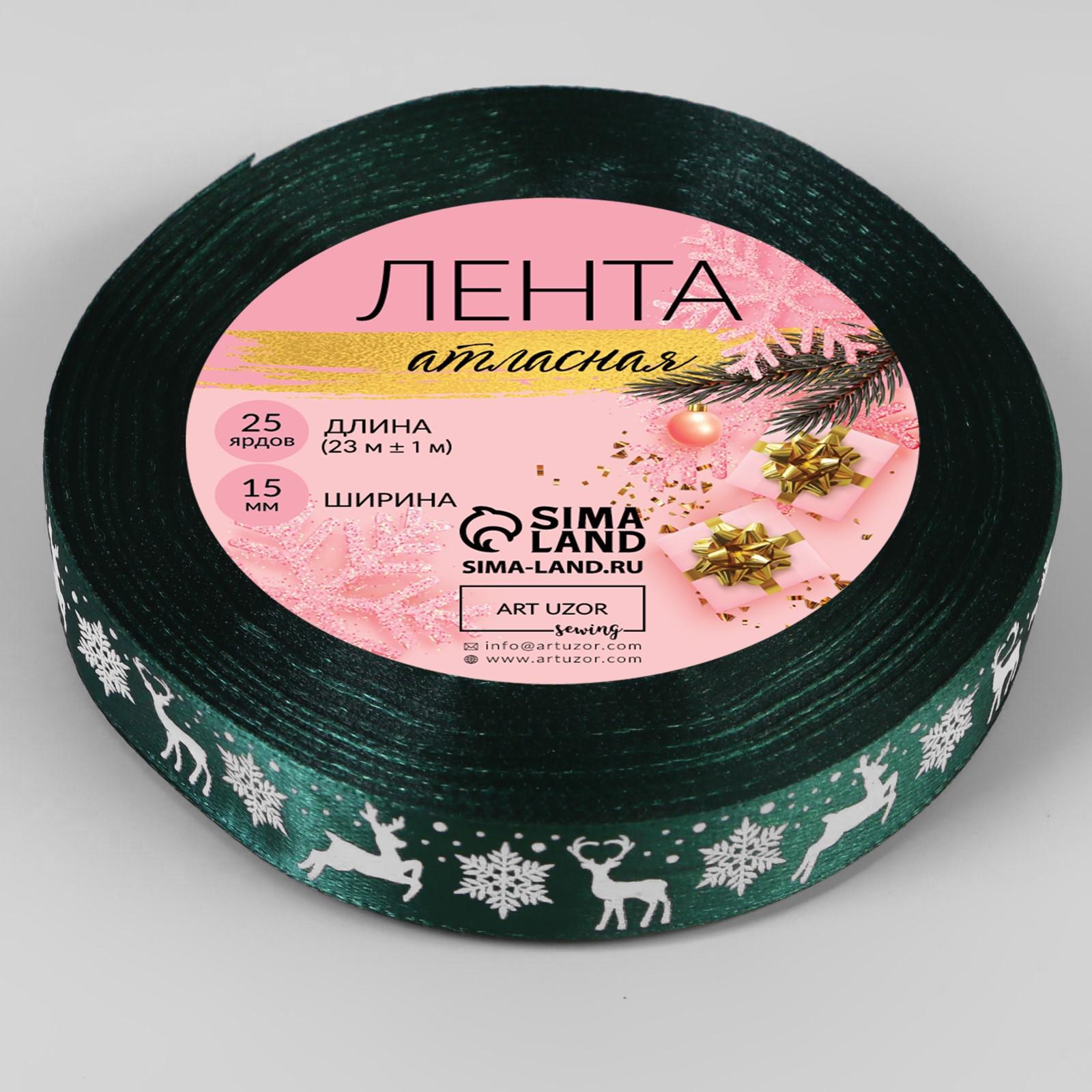 Лента атласная «Олени», 15 мм, 23 ± 1 м, цвет зелёный №56