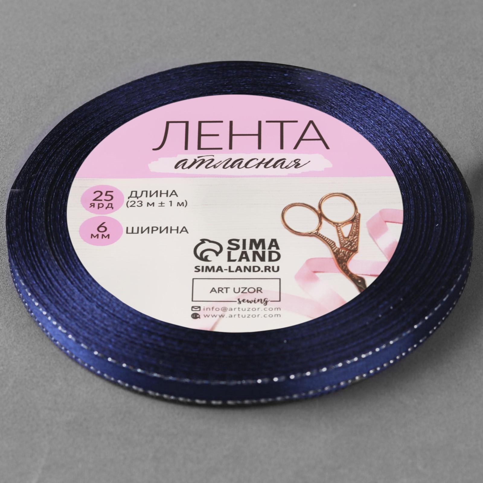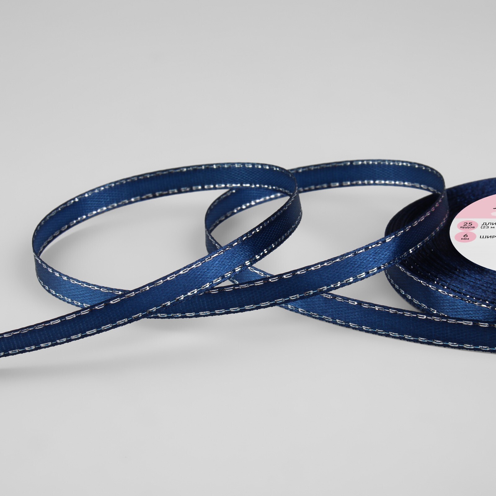 Лента атласная «Серебряные нити», 6 мм × 23 ± 1 м, цвет синий №038