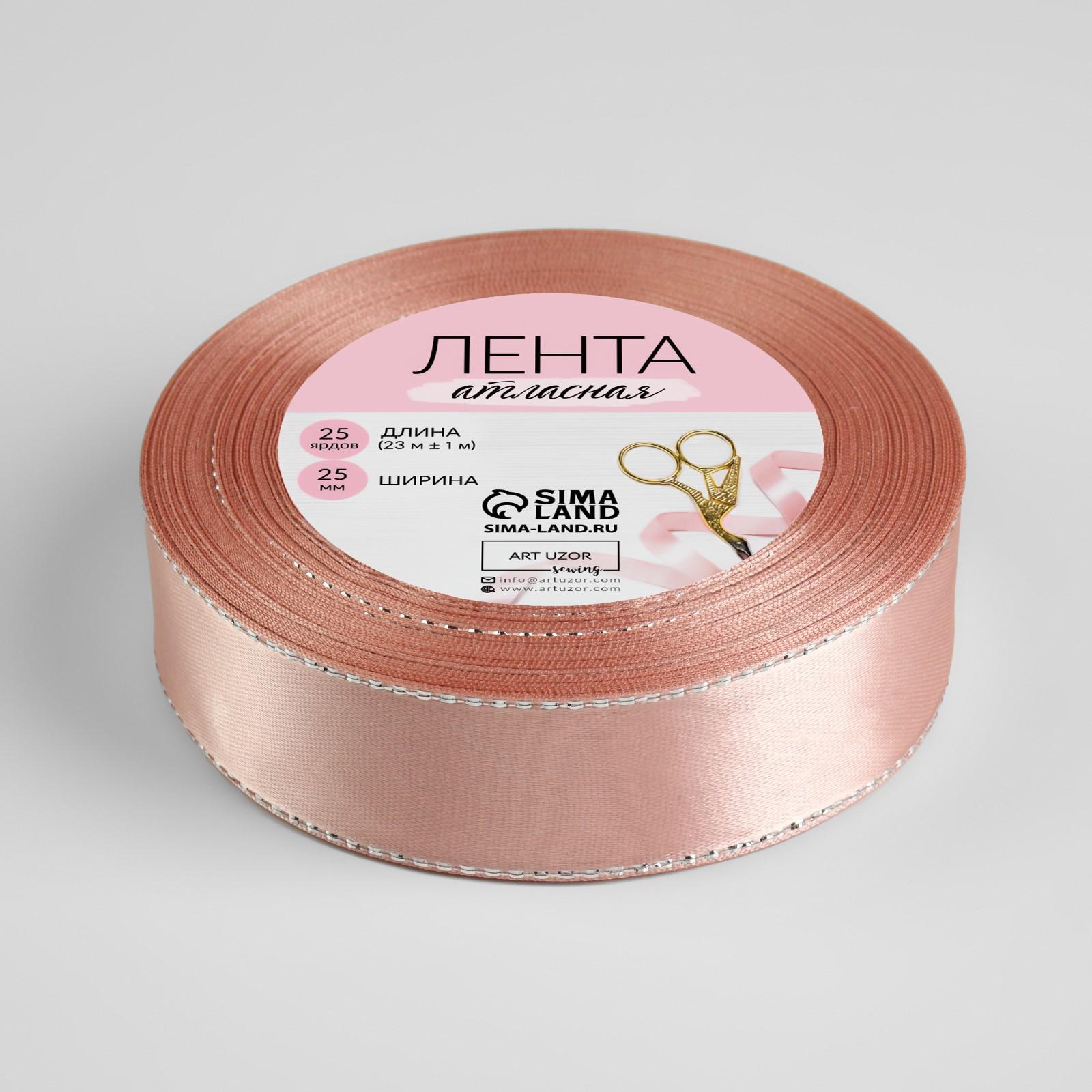 Лента атласная «Серебряные нити», 25 мм × 23 ± 1 м, цвет розовое золото №107