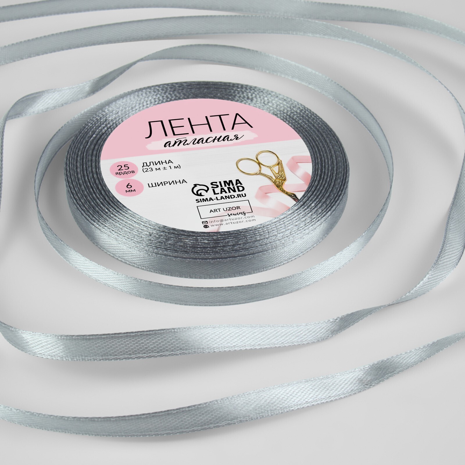 Лента атласная, 6 мм × 23 ± 1 м, цвет пепельный №59