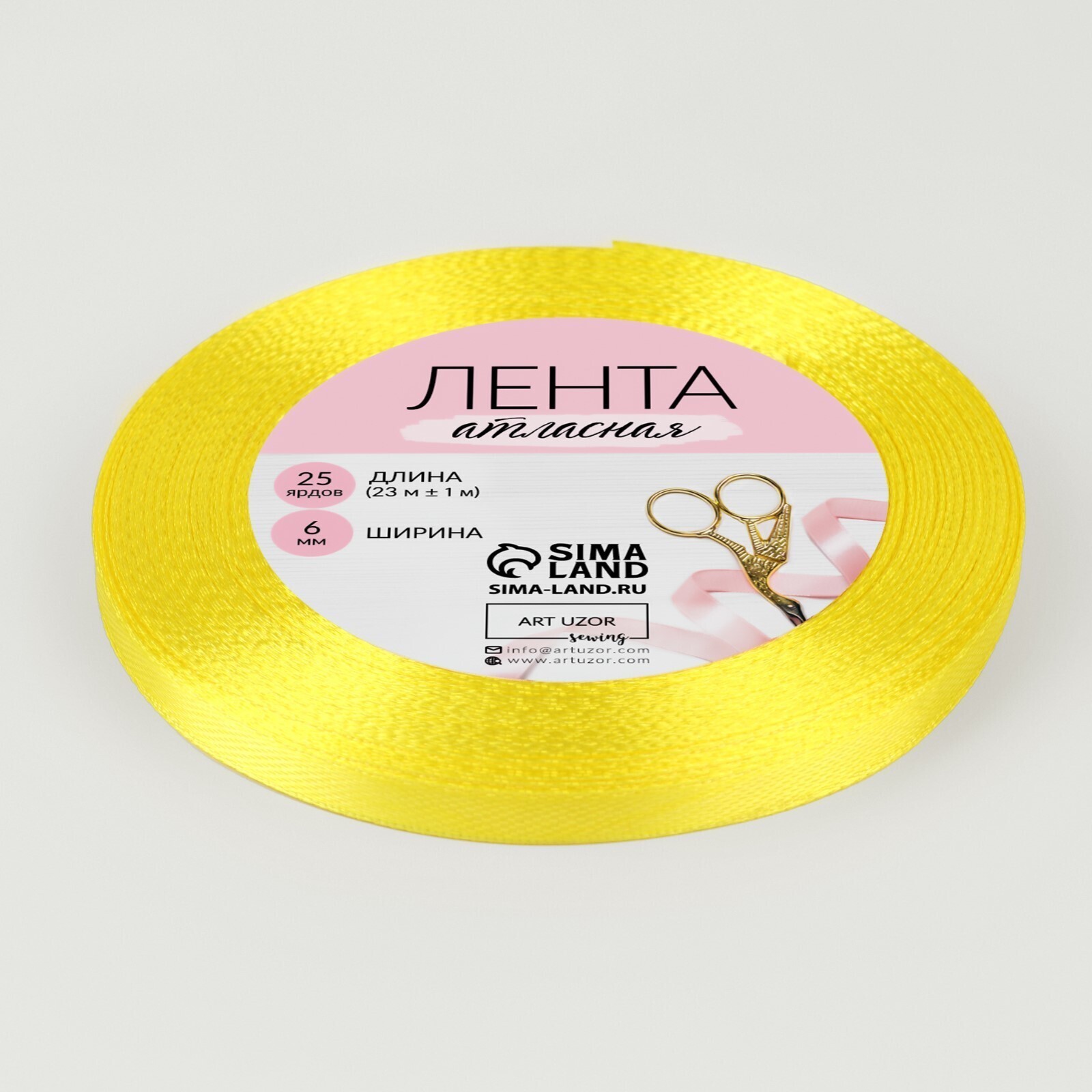 Лента атласная, 6 мм × 23 ± 1 м, цвет жёлтый №15