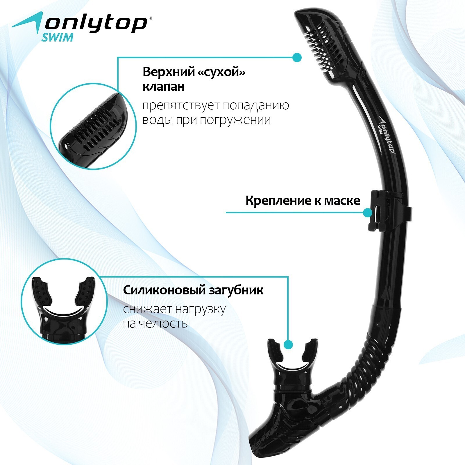 Трубка Onlytop Swim с системой Dry Top обеспечивает комфортное плавание и подходит начинающим и продвинутым пловцам.