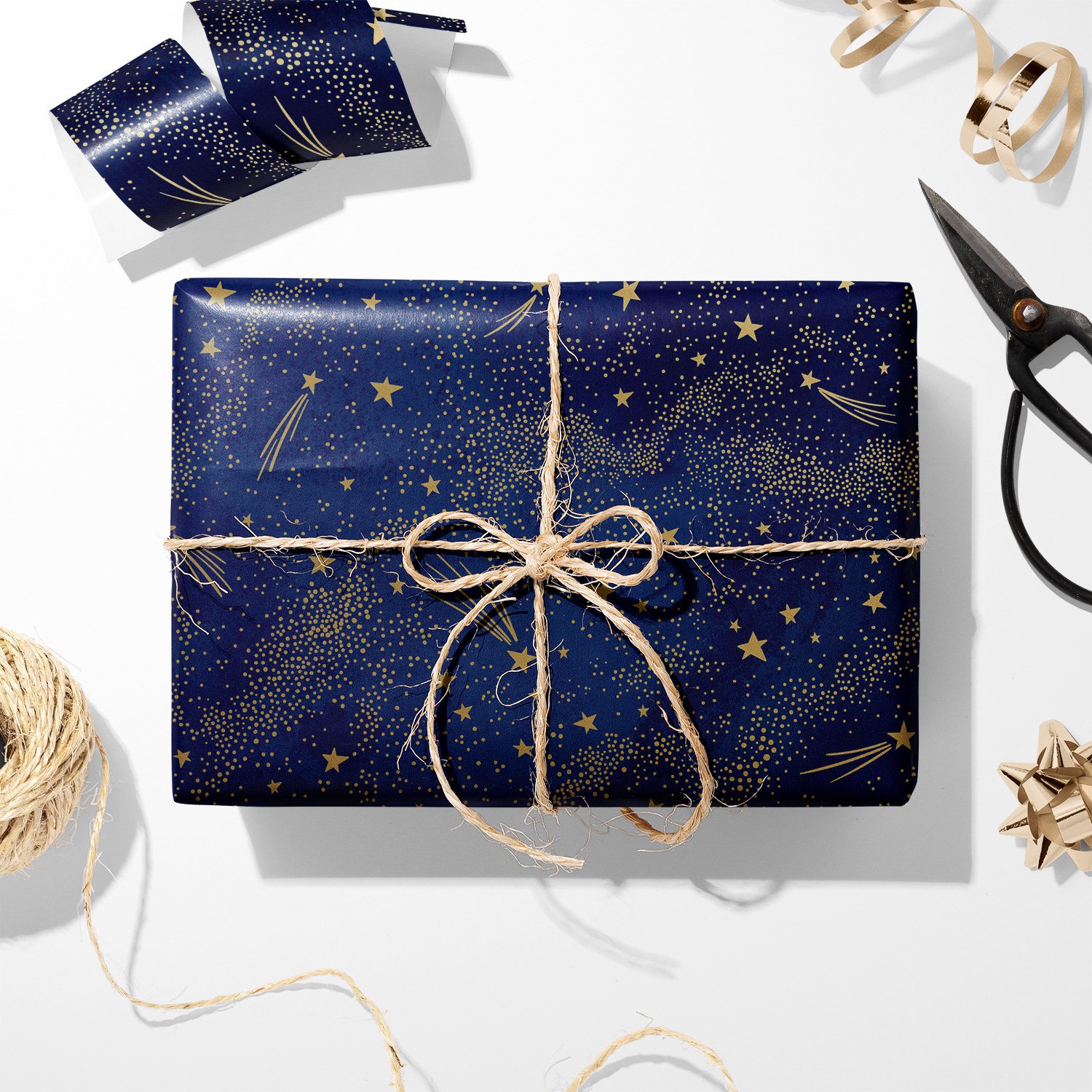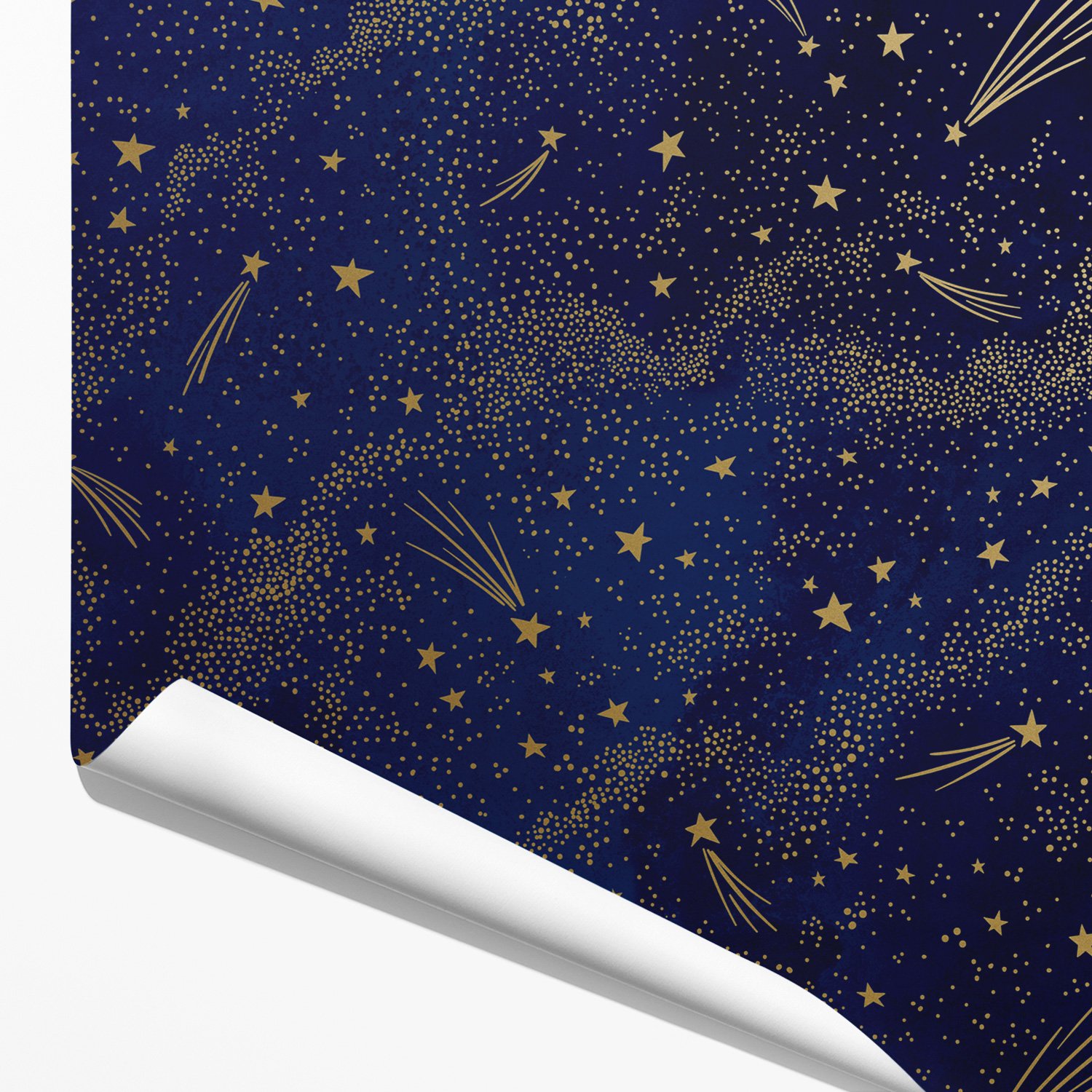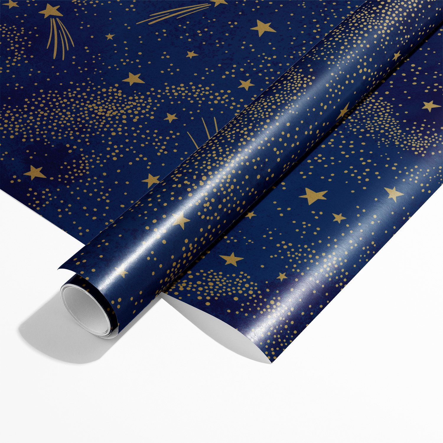Бумага упаковочная Красота в Деталях Звезды на темно-синем фоне KVD.BUM000.19