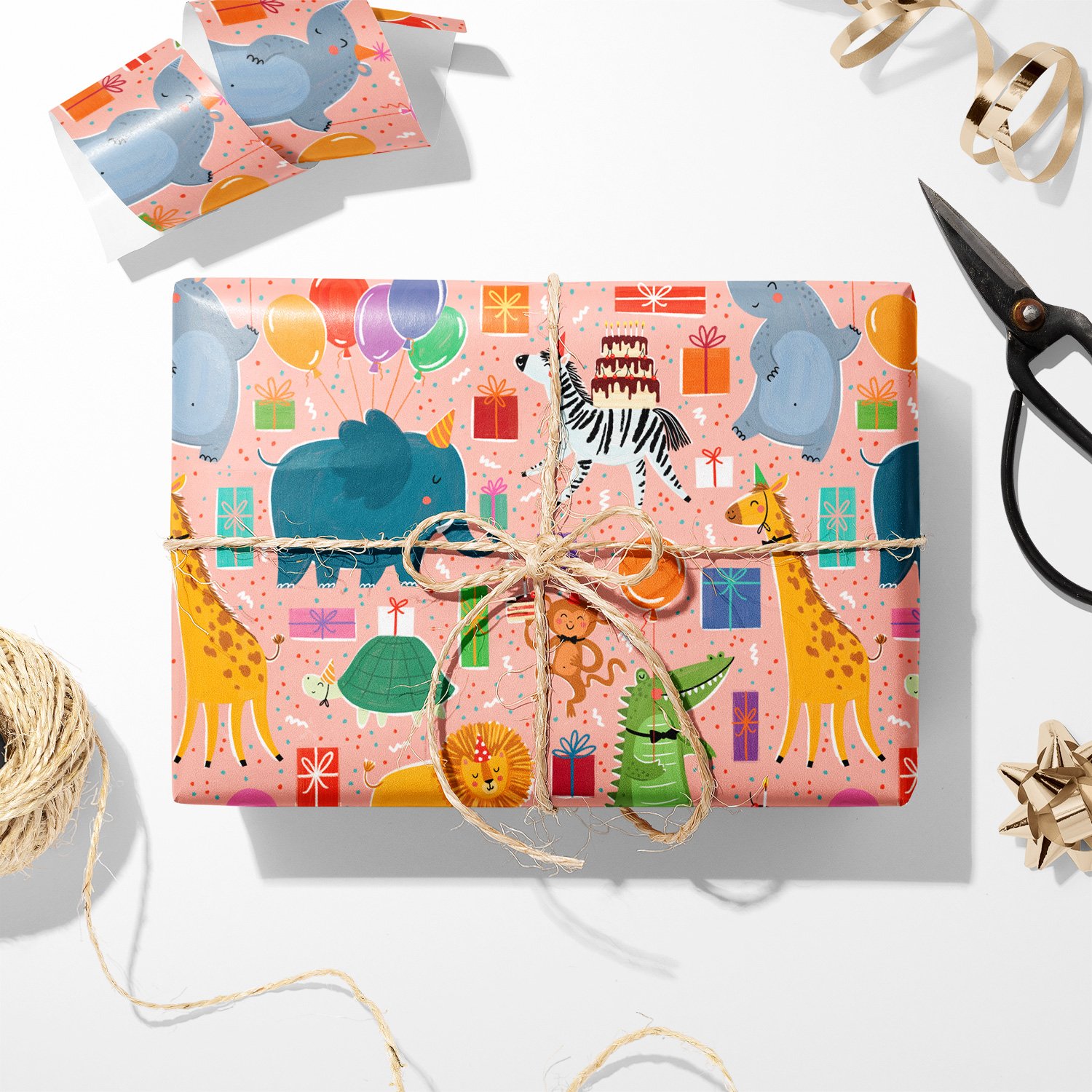 Бумага упаковочная Красота в Деталях Звери на персиковом фоне KVD.BUM000.11