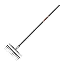 Металлические зубцы из нержавеющей стали разровняют даже тяжёлую влажную почву, разобьют большие комки земли.