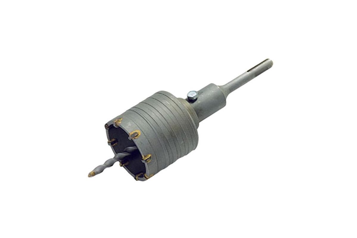 Твердосплавные зубья из сплава марки ВК8. Корпус коронки изготовлен из углеродистой стали. Хвостовик SDSPLUS. Резьбовое крепление коронки к хвостовику. На внешней стороне коронки нарезана спиральная канавка для улучшения вывода продуктов сверления и снижения нагрузки на перфоратор.