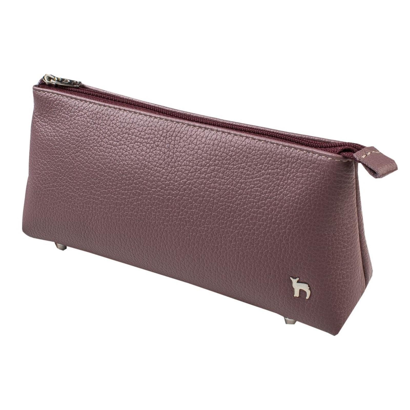 Косметичка изготовлена из натуральной высококачественной кожи. Закрывается на молнию, внутри есть одно большое отделение, на донышке — 4 металлические ножки.
