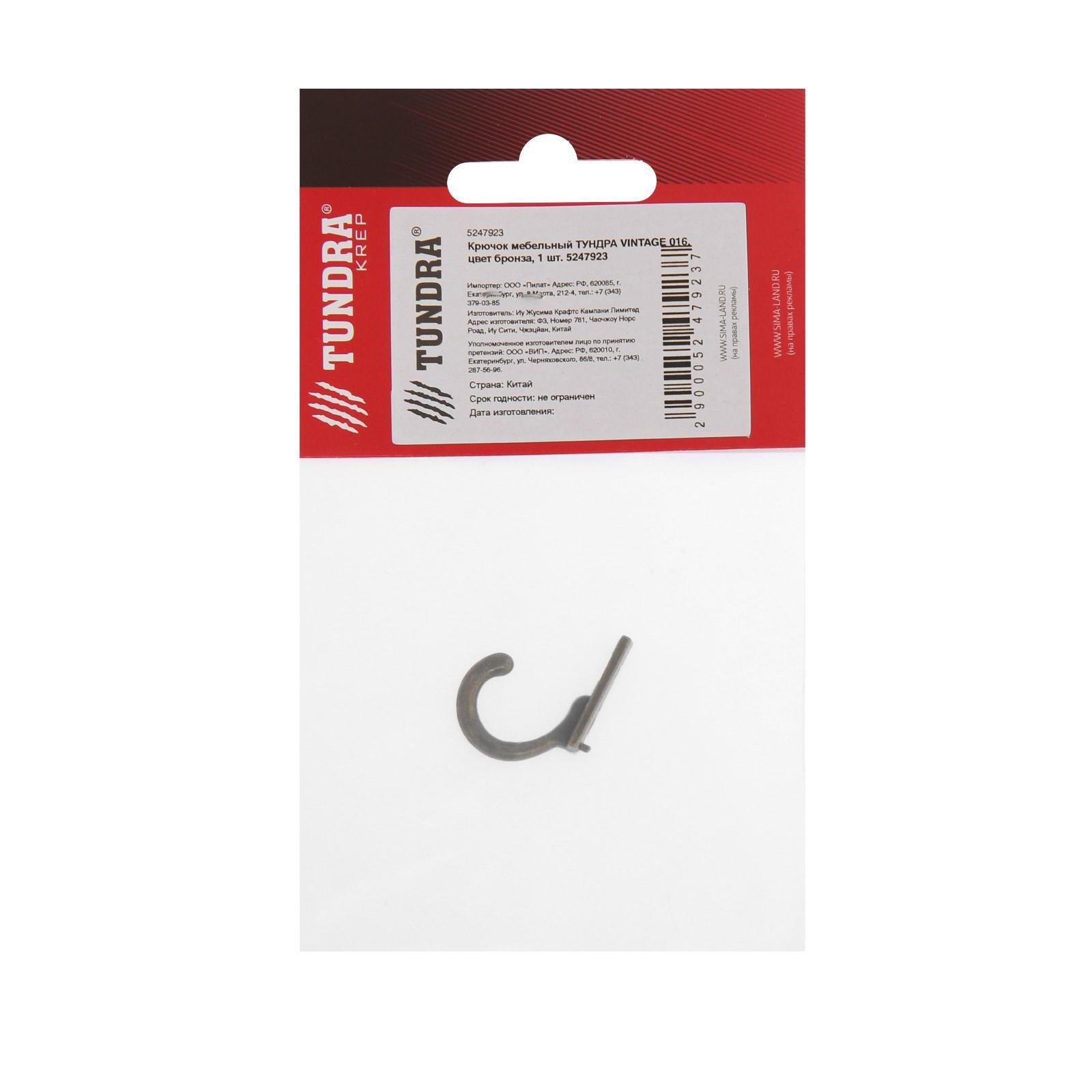 Крючок мебельный ТУНДРА VINTAGE 016, цвет бронза, 1 шт.