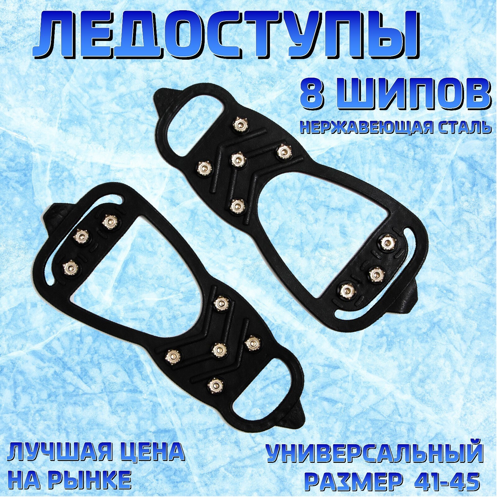 Ледоходы надёжно крепятся на обувь благодаря резиновым петлям и предотвращают скольжение при ходьбе. Это особенно актуально при гололедице, когда риск получить травму при падении значительно возрастает.