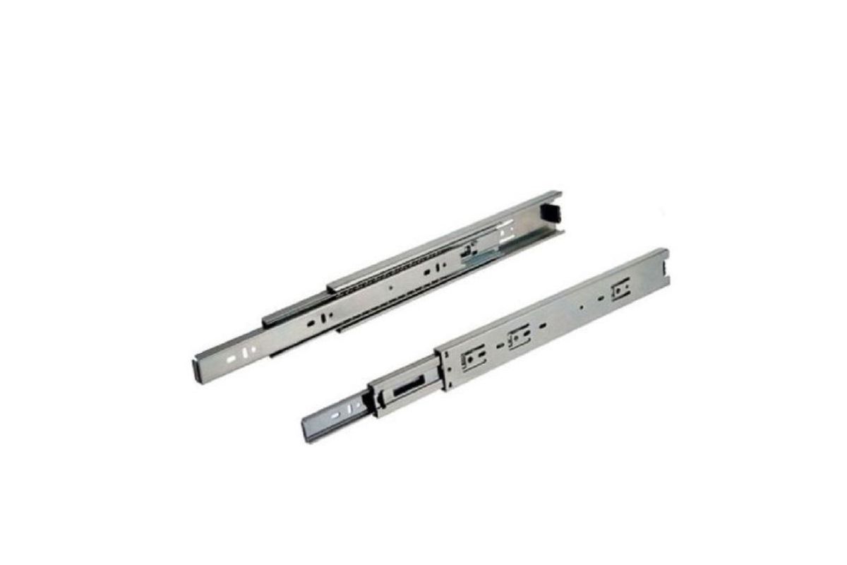 Направляющие шариковые для выдвижных ящиков. Телескопический механизм полного выдвижения, с упором и защитой от выкатывания.