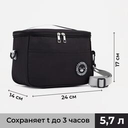 Сумка-термо Одноцвет 5,7л, 24*14*17, отд на молнии, н/карман, дл ремень, черный