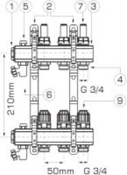 • В комплекте коллектор, кронштейн, расходомер, развоздушиватель, термостатический регулировочный клапан