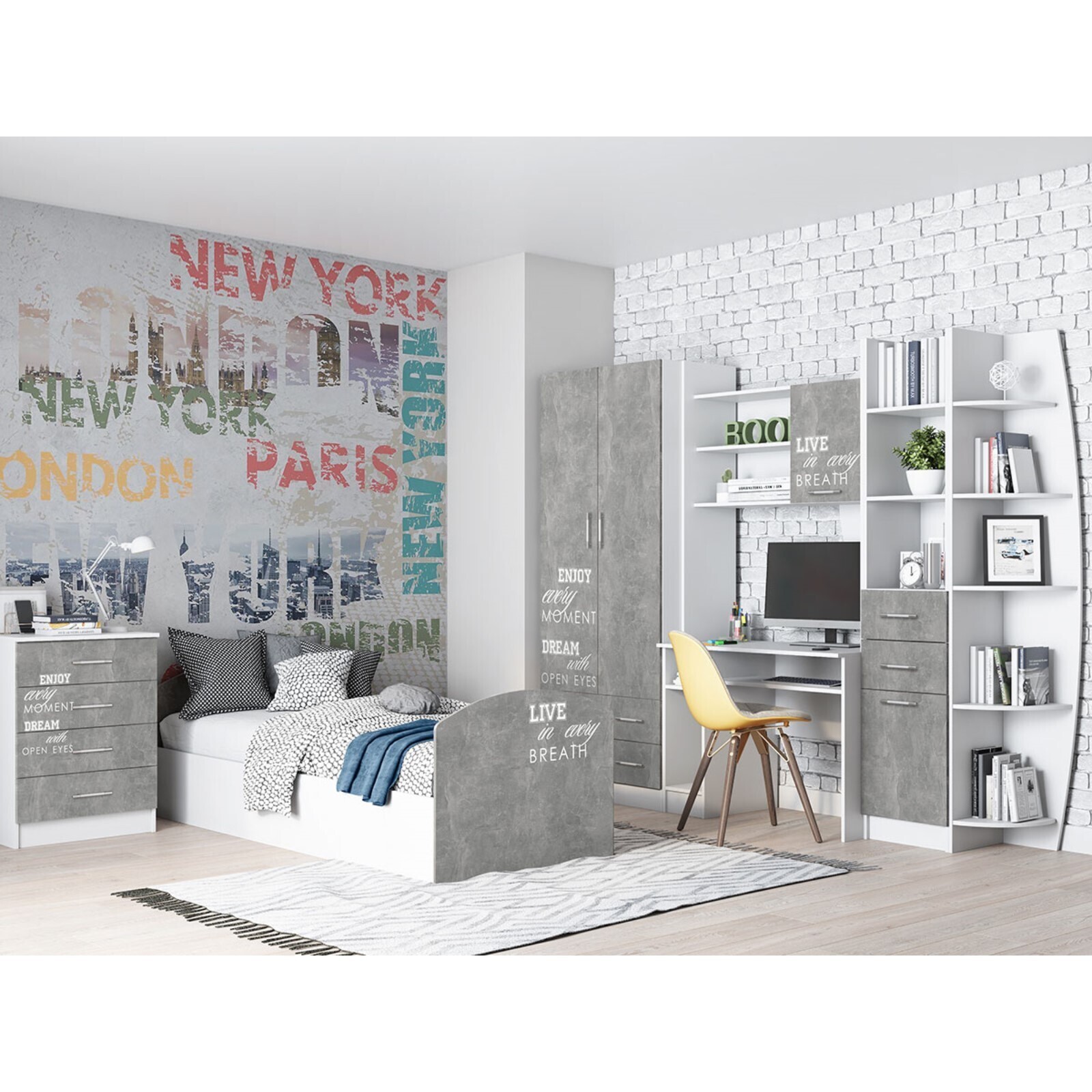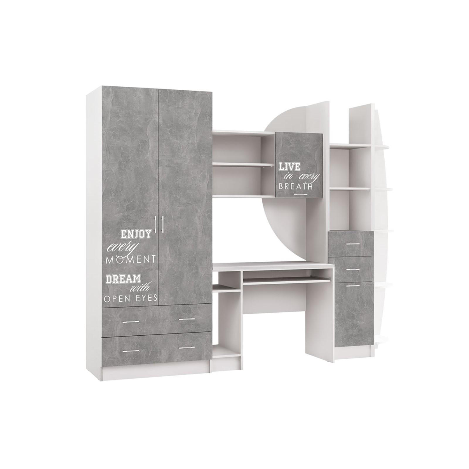 Детская Стенка Юниор 2, Шкаф , стол, полка, стеллаж, Белый/Бетон светлый