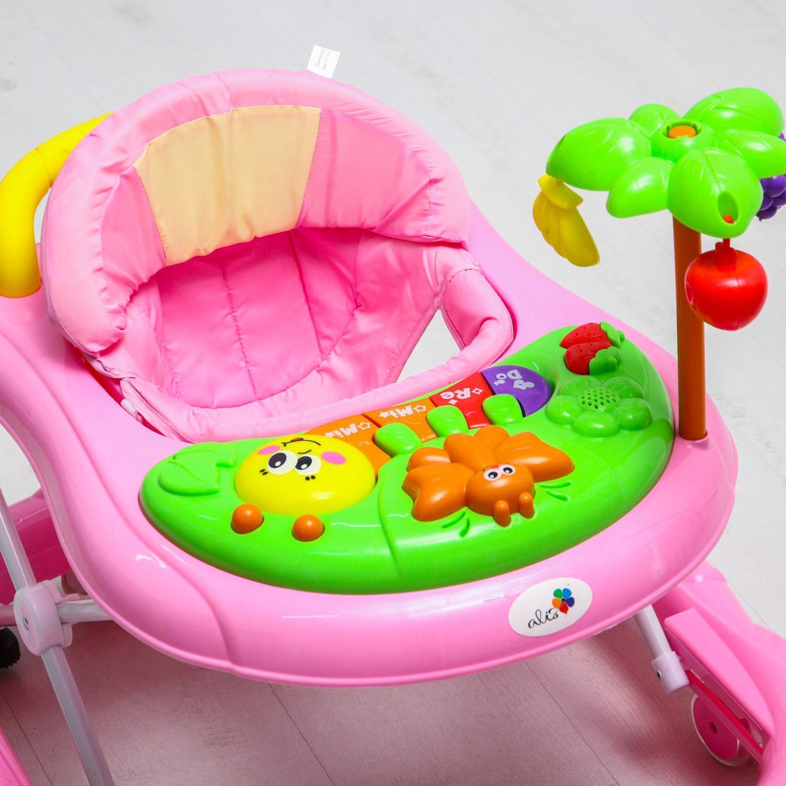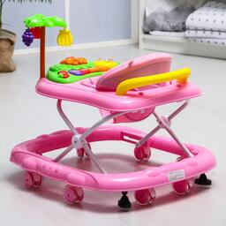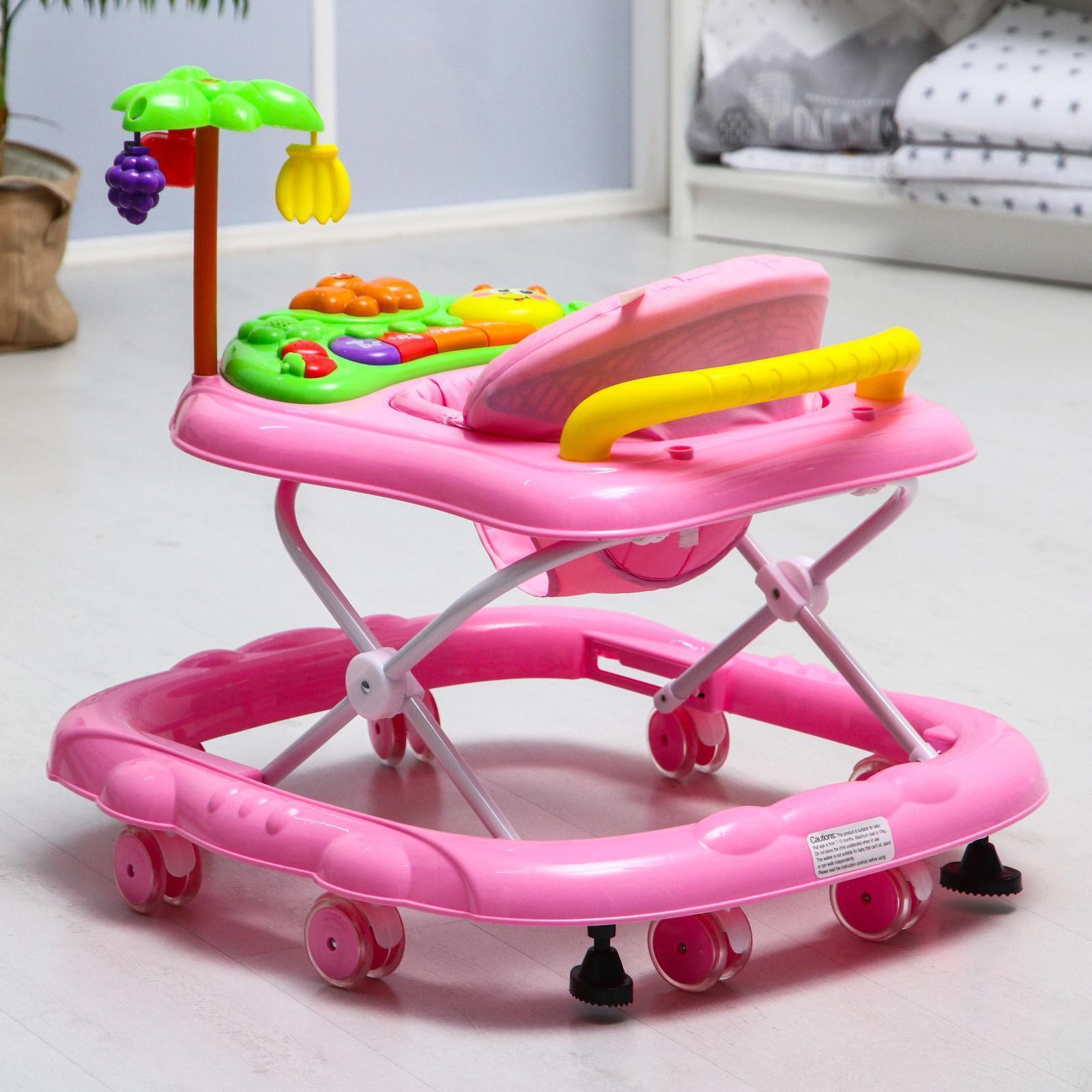 Ходунки «Пальма», 7 силик. колес, муз., игрушки, розовый