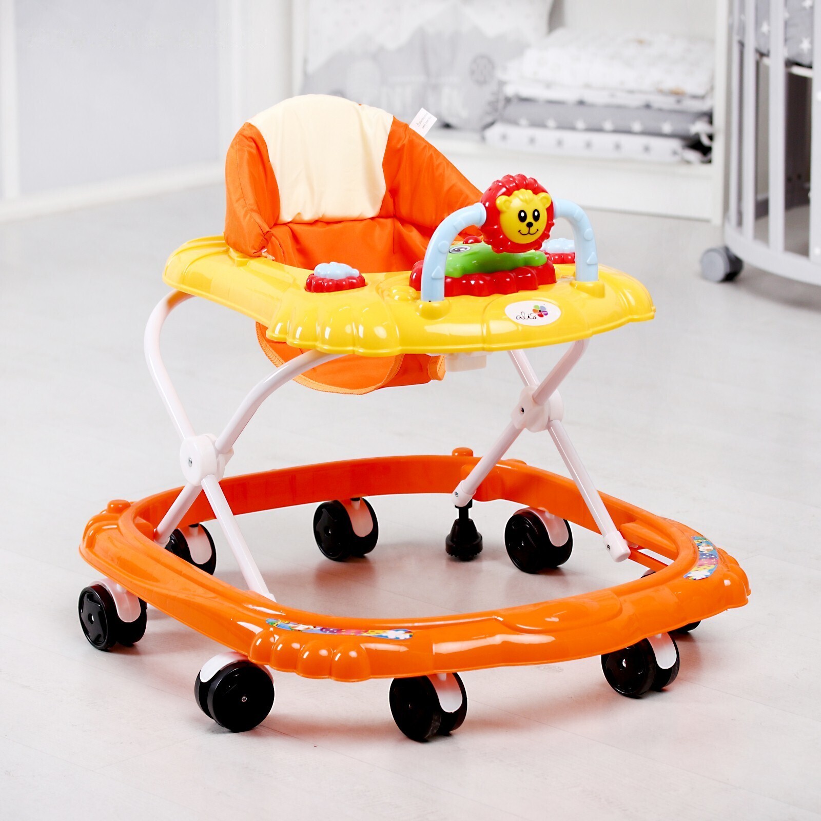 Ходунки «Львенок», 8 колес, тормоз, муз., оранжевый/желтый