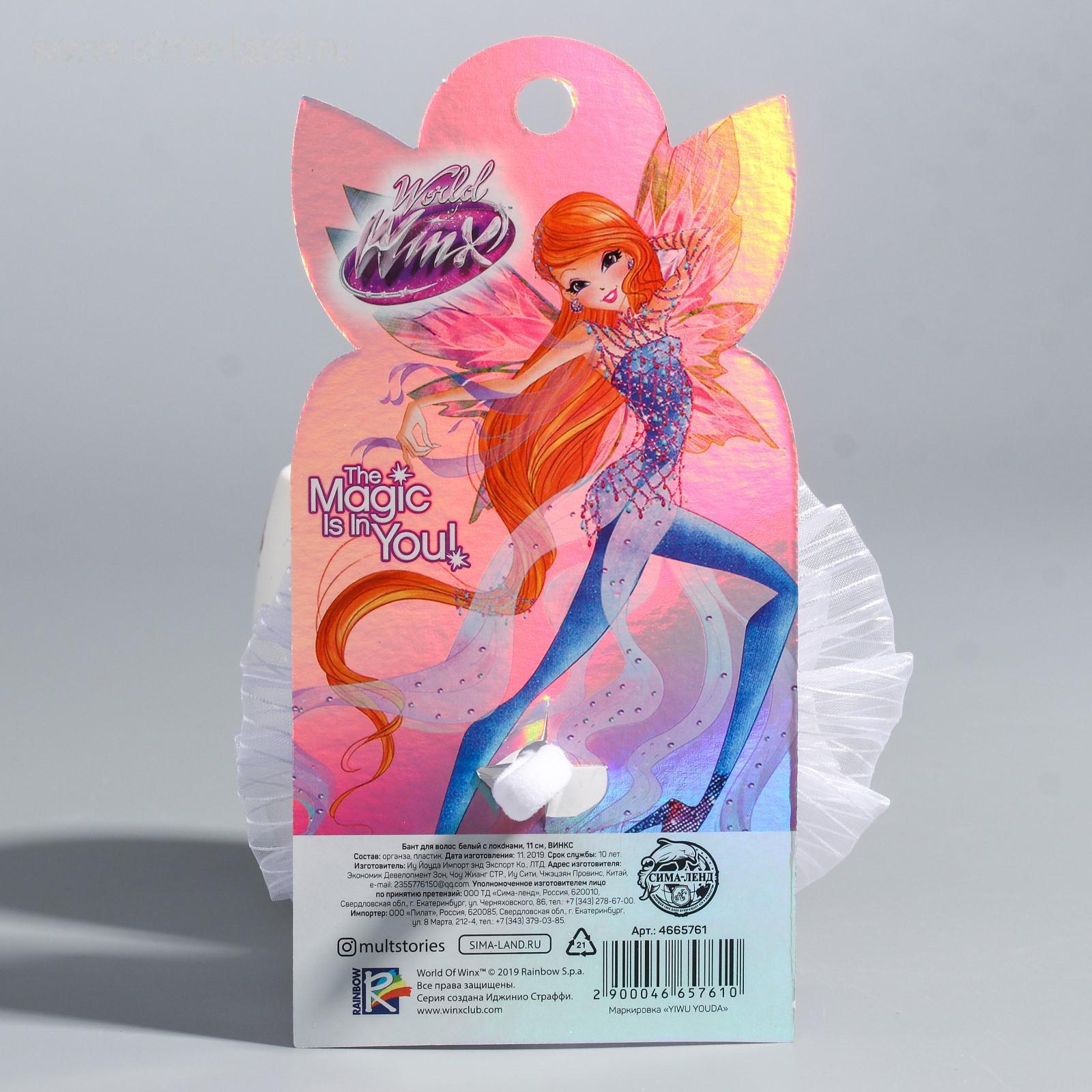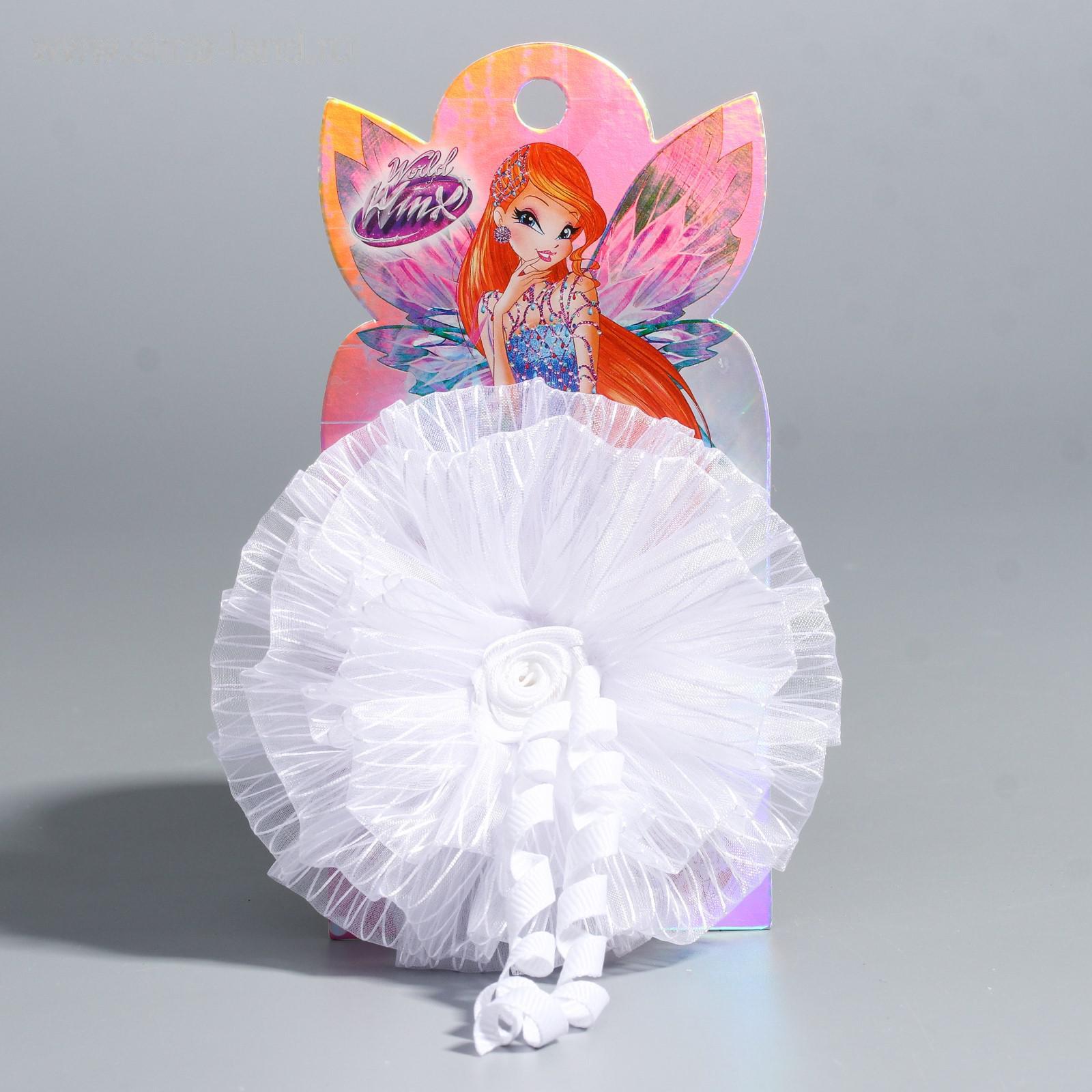 Бант для волос, ВИНКС, белый с локонами, 7 см