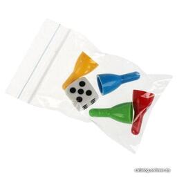 • Комплектация - картонное игровое поле размером 33,5 х 48 см- игральный кубик- 4 разноцветные пластиковые фишки