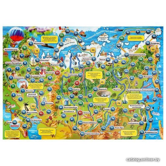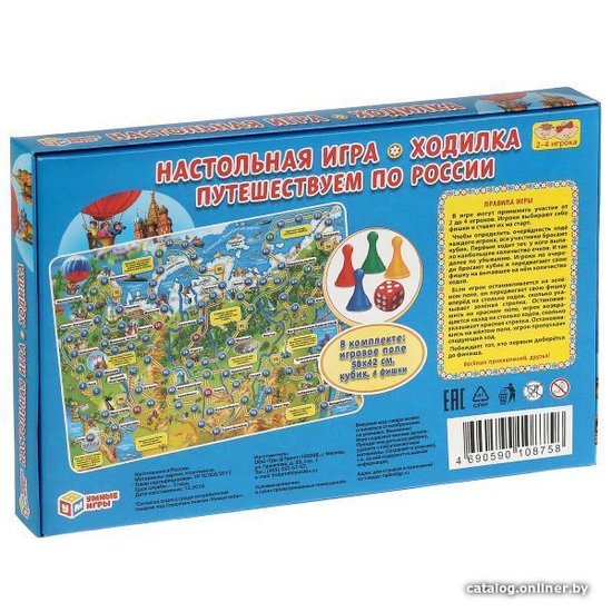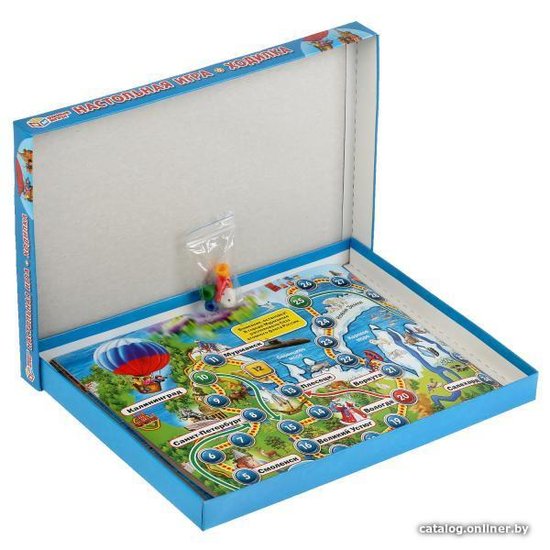 • Комплектация - красочное игровое поле- 4 фишки- кубик