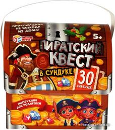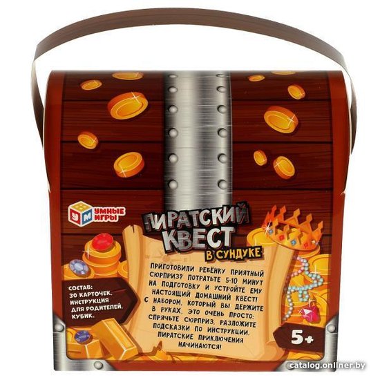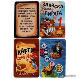 Комплектация- 10 карточек «Карта сокровищ»- 10 карточек «Записка старого пирата»- 10 карточек «Загадка старого пирата»- кубик- инструкция для родителей