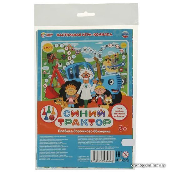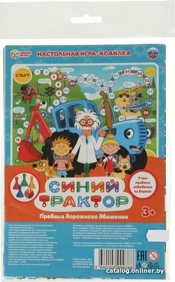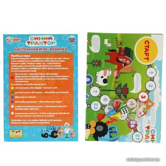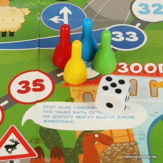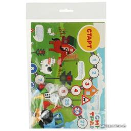 • Комплектация - картонное игровое поле размером 33,5 х 48 см- игральный кубик- 4 разноцветные пластиковые фишки