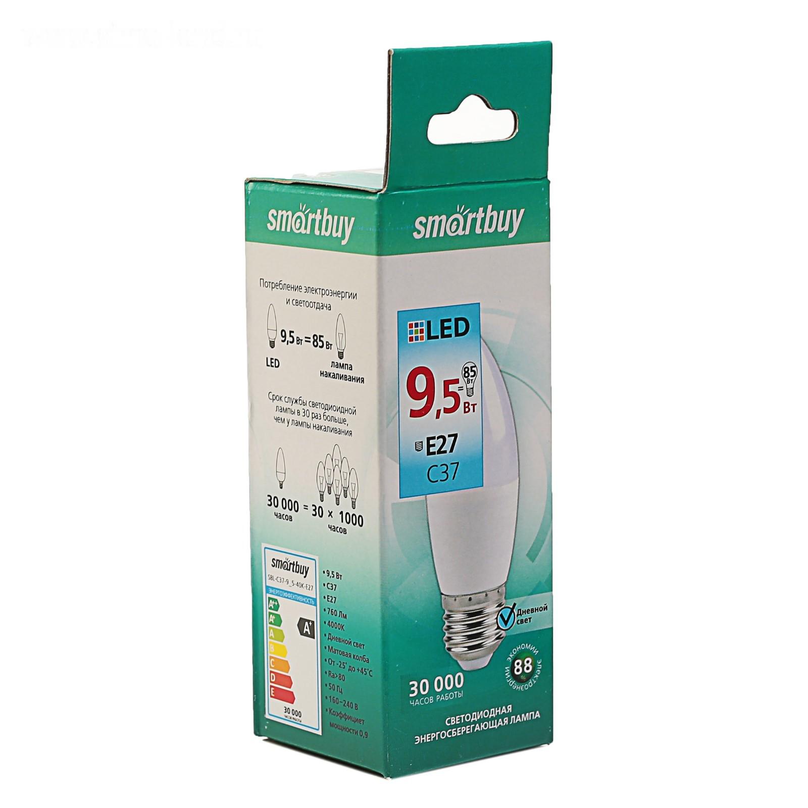 Лампа светодиодная Smartbuy, Е27, C37, 9.5 Вт, 4000 К, дневной белый свет