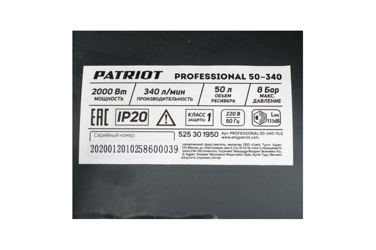 Компрессор PATRIOT Professional 50-340 поршн.масл, 340л/мин, 8бар, 2кВт, 50л, быстросъем 1/4''+елоч