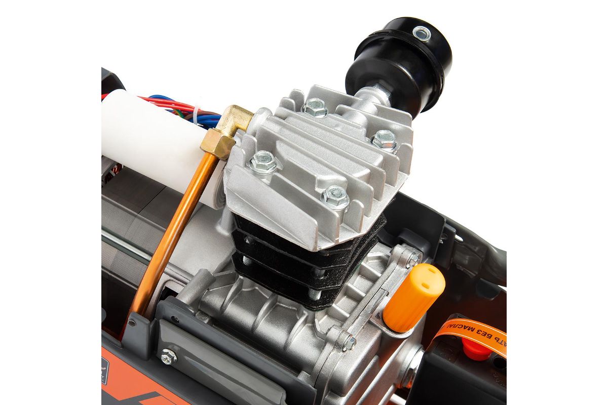 Компрессор обладает высокой мобильностью: установлены транспортировочные колеса и удобная рукоятка. Качество работы с компрессором повышается за счет антивибрационных подушек, которые поглощают вибрацию. Модель оснащена индикатором уровня масла и защитой от перегрузок, что увеличивает срок службы компрессора. Наличие двух манометров позволяет отслеживать давление в системе ''компрессор-инструмент'' для каждого пневмоинструмента в отдельности. Перед окрашиванием корпус обработан антикоррозионным составом. Качество изделия повышается за счет высокотеплопроводных ребер жесткости, которые увеличивают срок непрерывной работы на 50%.