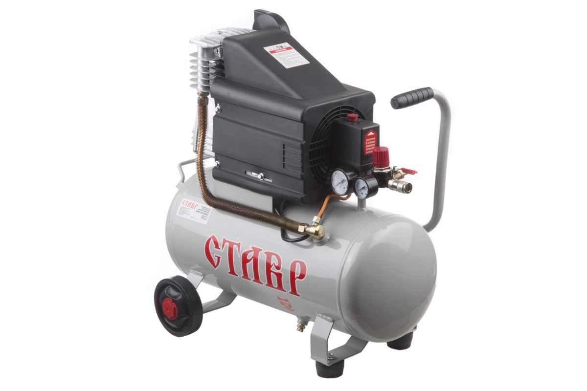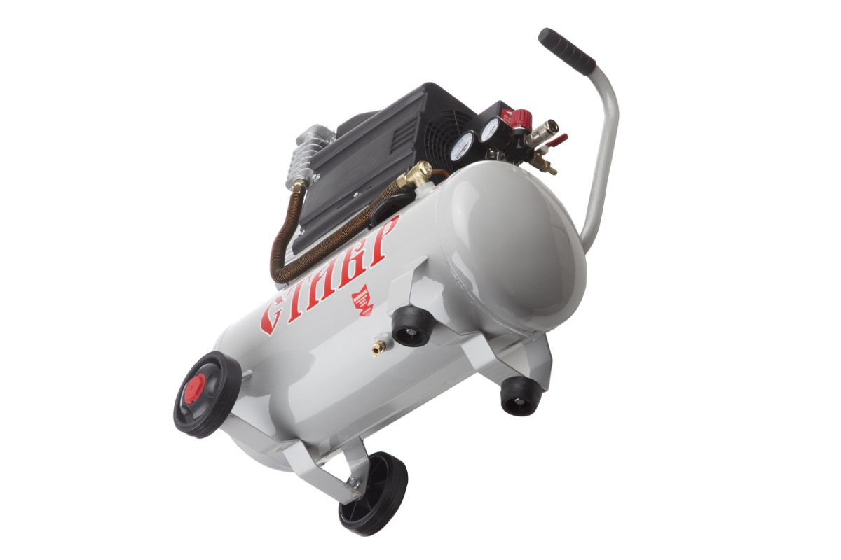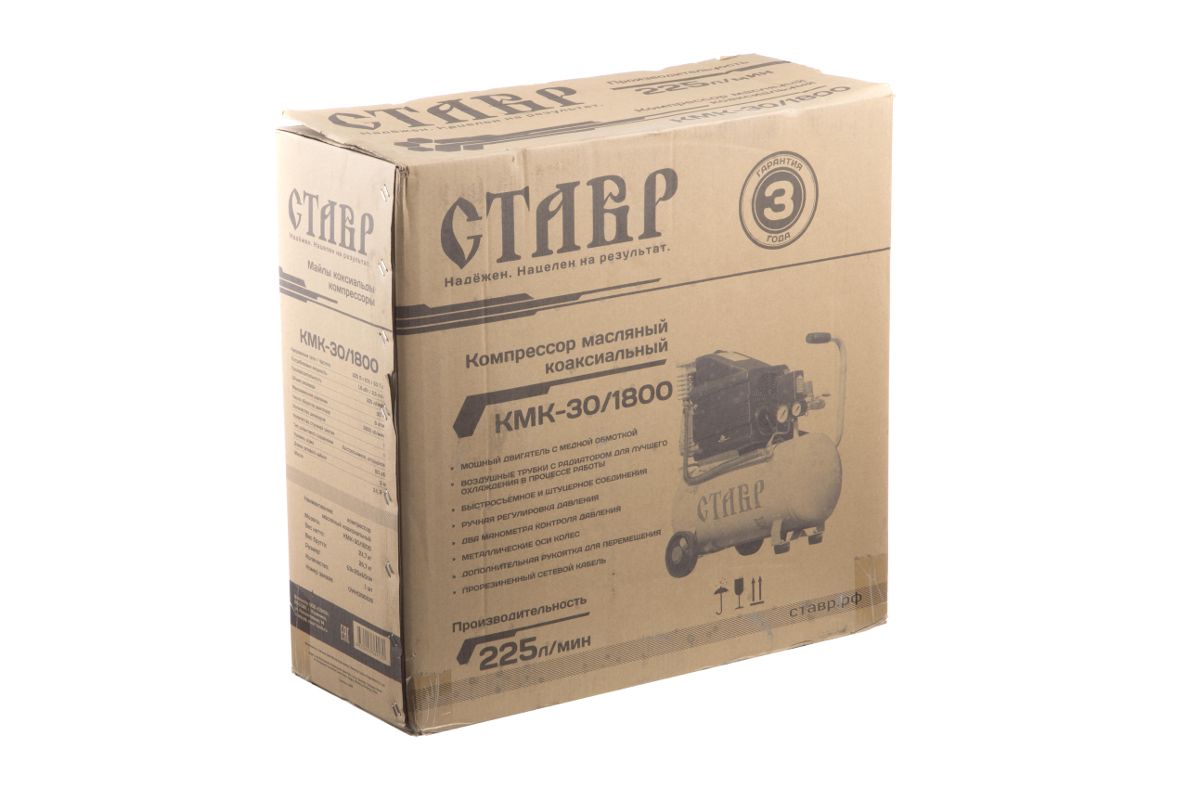 Компрессор СТАВР КМК-30/1800 оборудован двигателем на 1800 Вт, производительность 225 л/мин. Подойдёт для работы с продувочными, гвоздезабивными, накачивающими, заклёпочными пистолетами и аэрографами.