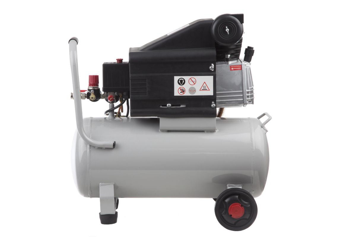 Рукоятка и два колеса – компрессор удобно перемещать по рабочей площадке.