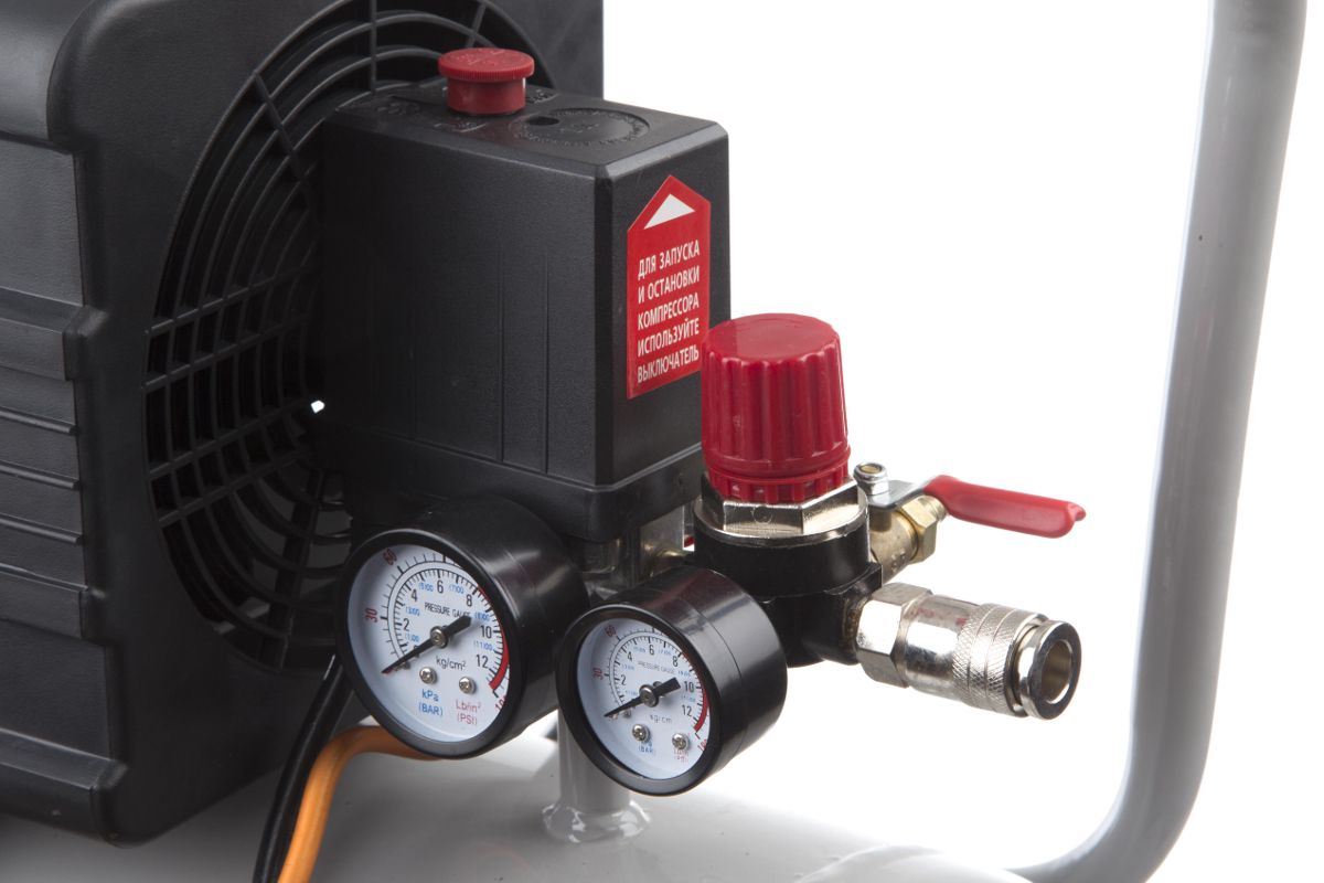 Объем ресивера 30 л – компрессор компактный и мобильный, поместится в багажник машины.