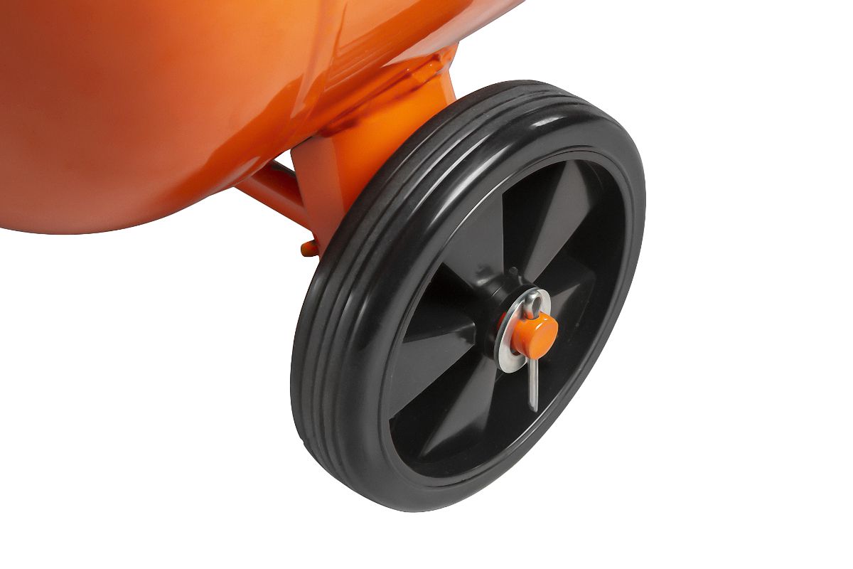 Установлен на 4 колеса. Для перемещения не нужно приподнимать компрессор.