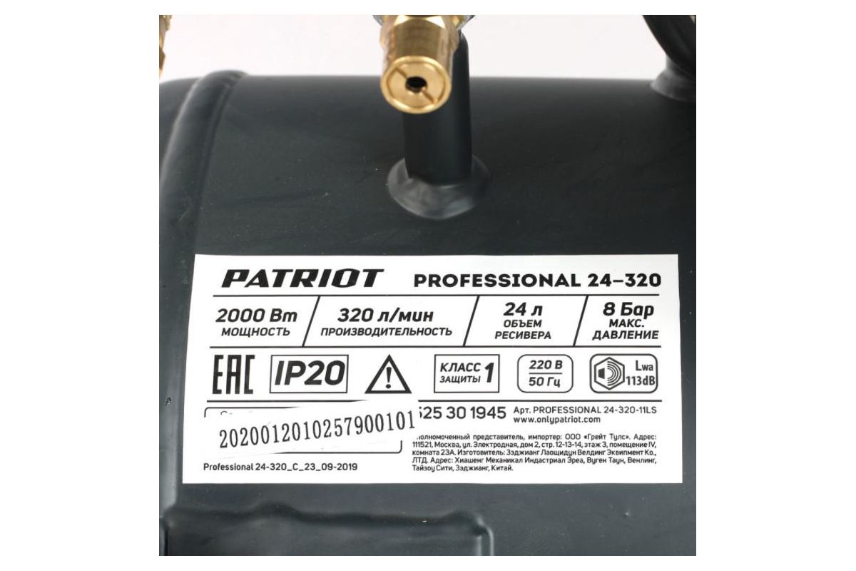 Компрессор PATRIOT Professional 24-320 поршн.масл, 320л/мин, 8бар, 2кВт, 24л, 1/4'' + ''елочка''