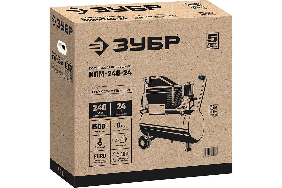 Компрессор ЗУБР КПМ-240-24 воздушный, 240 л/мин, 24 л, 1500 Вт