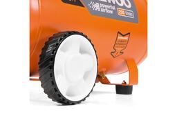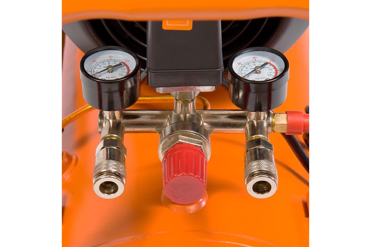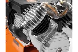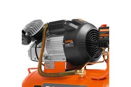 Компрессор очень мобилен счет транспортировочных колес. В компрессоре установлены две антивибрационные подушки, которые поглощают вибрацию при любой частоте работы двигателя. Модель оснащена индикатором уровня масла и защитой от перегрузок, что увеличивает срок службы компрессора. Наличие двух подключений с манометрами позволяет одновременно подключать два пневмоинструмента. Химическая обработка корпуса перед покраской увеличивает коррозионную стойкость. Также качество повышается за счет высокотеплопроводных ребер жесткости, которые эффективно отводят тепло и увеличивают срок непрерывной работы на 50%.