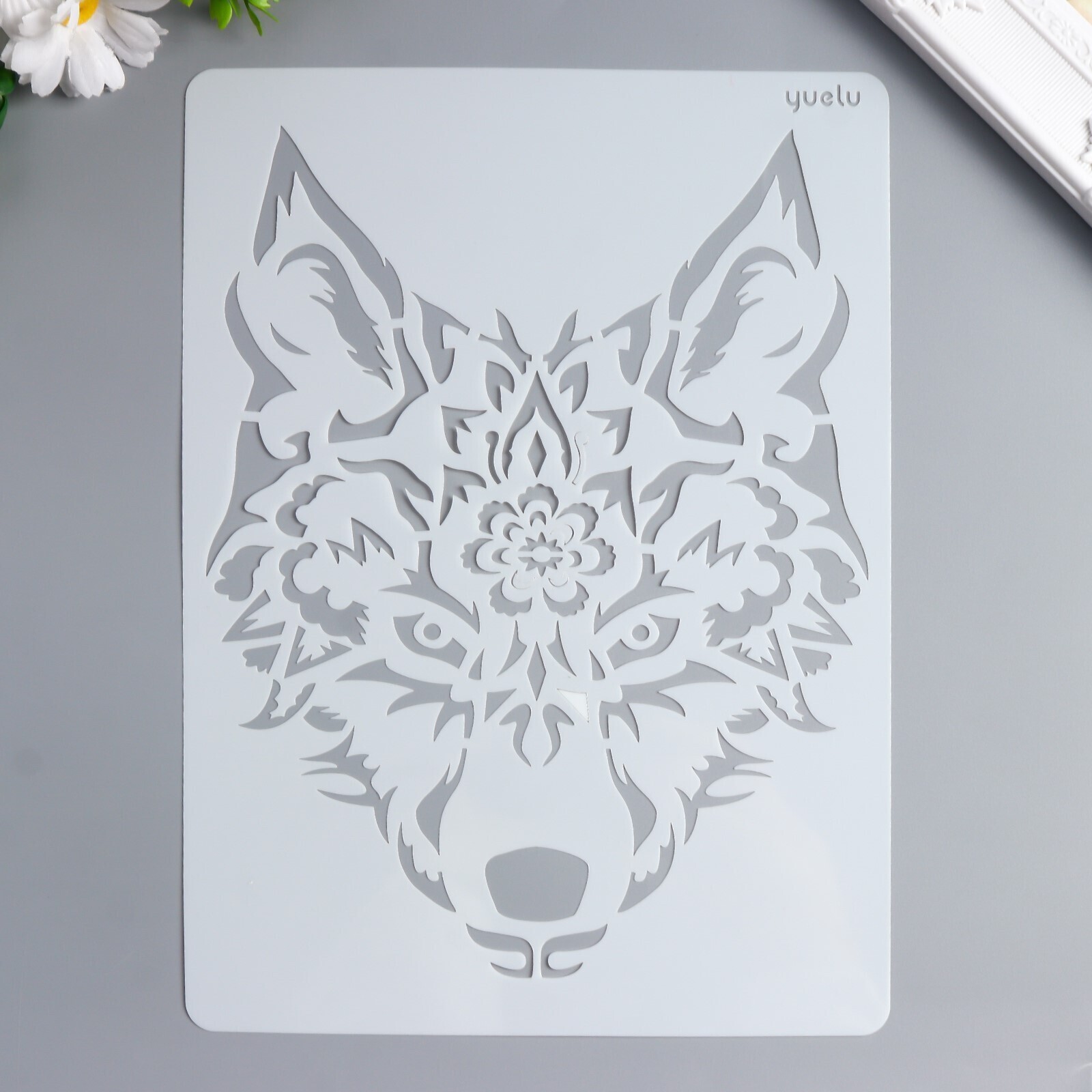 Трафарет пластик "Волк в стиле мехенди" 29х20,8 см