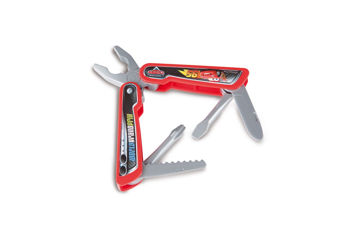 Многофункциональный инструмент 5-в-1 выполнен в стиле популярного мультфильма Тачки-2, очень похож на настоящий швейцарский складной нож и включает в себя: нож, крестовую и плоскую отвертки, маленькую пилу и даже плоскогубцы.