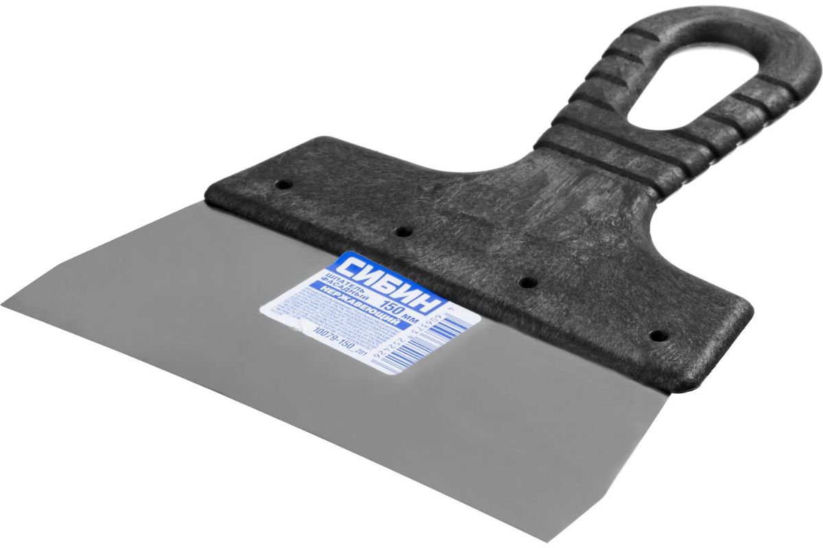 Шпатель СИБИН ФАСАДНЫЙ 10079-150_z01 нержавеющий 150мм Фасадный, полотно из нержавеющей стали, пластмассовая ручка