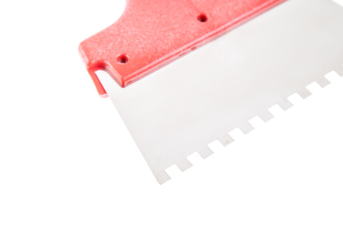 - Зубчатый фасадный шпатель с антикоррозийным покрытием рабочего полотна;