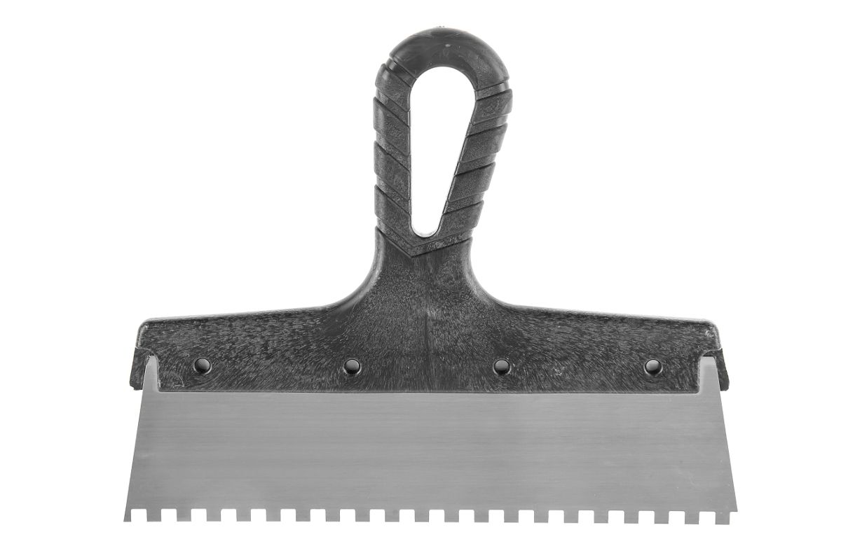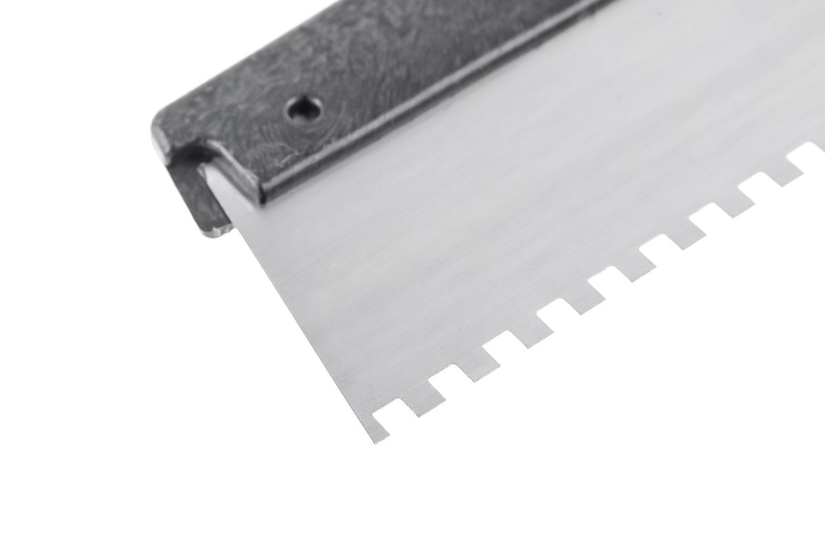 - Зубчатый фасадный шпатель с антикоррозийным покрытием рабочего полотна;