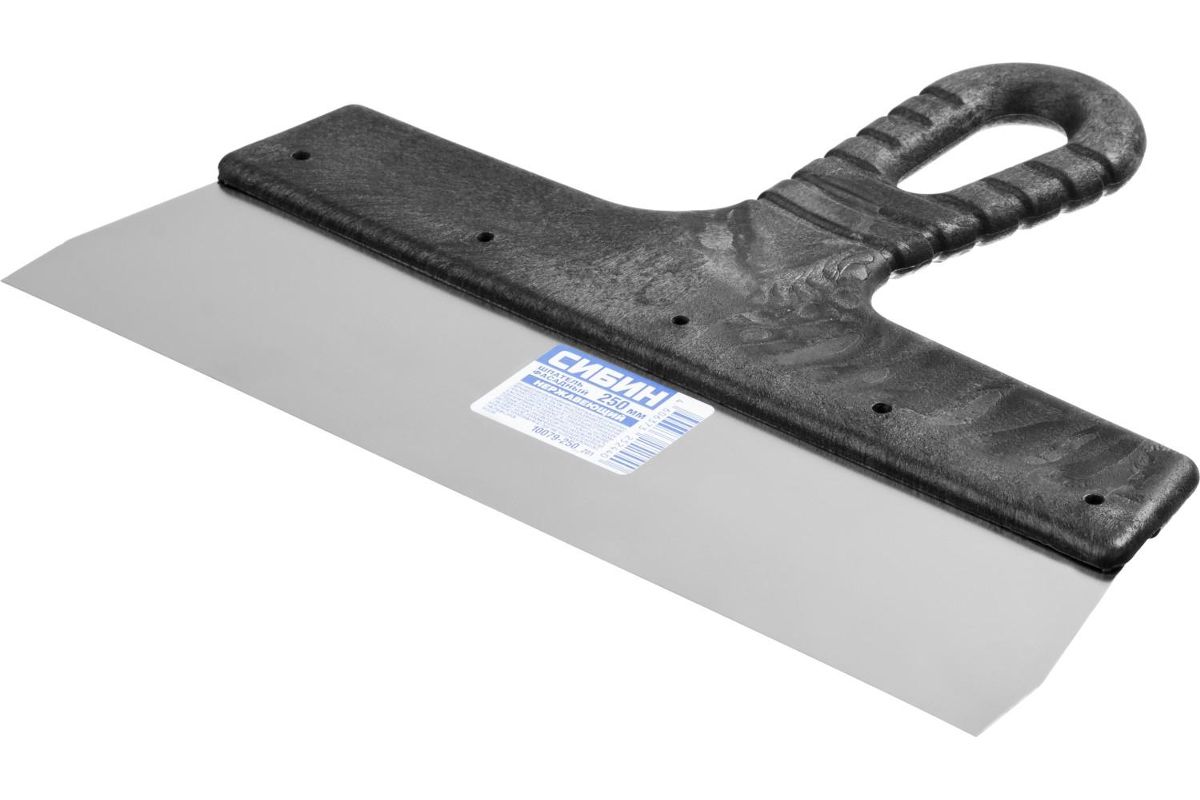Шпатель СИБИН ФАСАДНЫЙ 10079-250_z01 нержавеющий 250мм Фасадный, полотно из нержавеющей стали, пластмассовая ручка