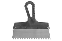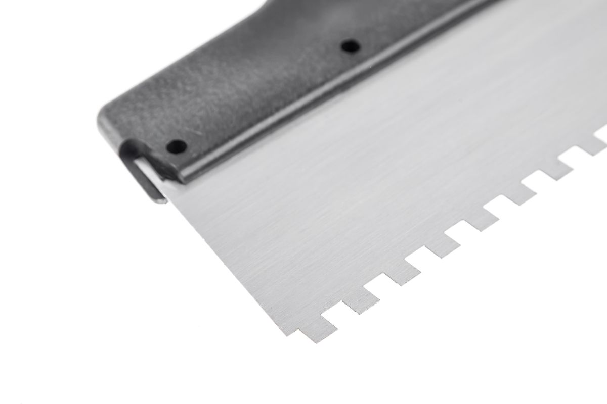 - Зубчатый фасадный шпатель с антикоррозийным покрытием рабочего полотна;