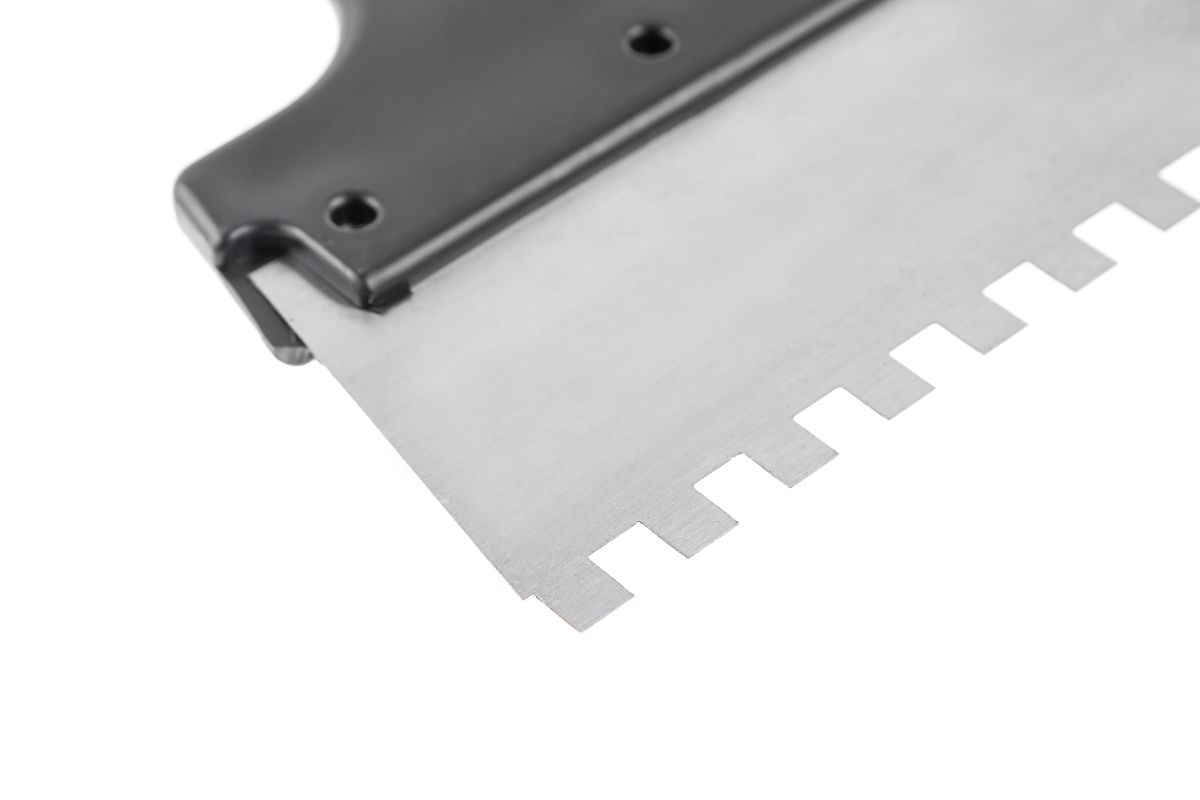 - Зубчатый фасадный шпатель с антикоррозийным покрытием рабочего полотна;