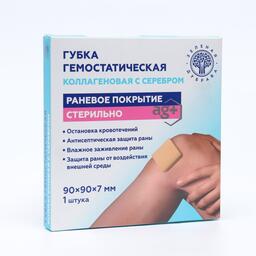 Губка гемостатическая кровоостанавливающая коллагеновая с серебром, 90*90 мм,