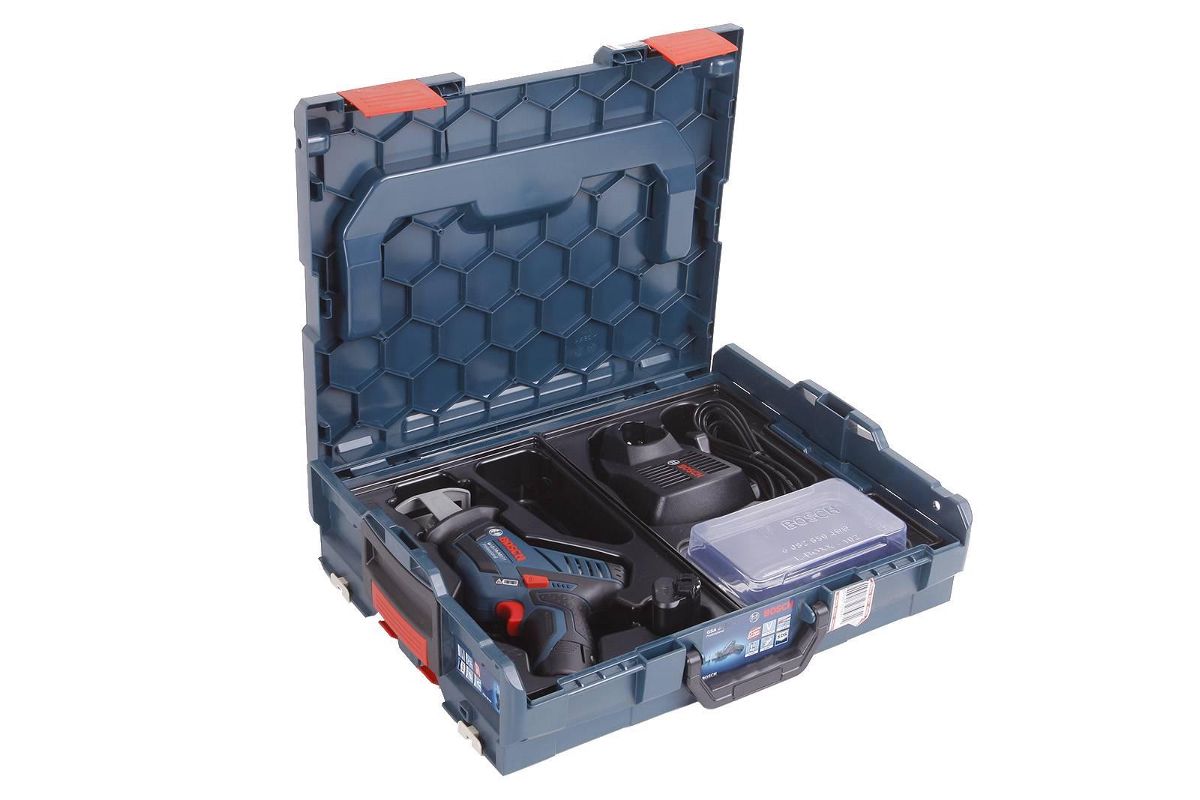 Сабельная пила BOSCH GSA 10,8 V-LI - лидер в своем классе по весу (всего 1200 граммов) и габаритам. Комплектуется двумя 10,8-вольтовыми аккумуляторами LiION емкостью 2Ач. Обороты — 3000/минуту; ход — 14,5 миллиметров; толщина заготовки (дерево): 65 миллиметров; толщина заготовки (металл): 50 миллиметров. Особенности аппарата: источник питания с системой ECP; индикатор разрядки; встроенный модуль подсветки; SDS-фиксация оснастки; кейс и пилки в комплекте.
