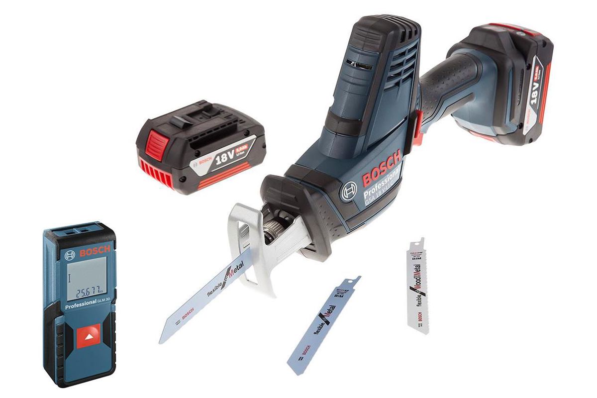 В состав набора входят: Ножовка BOSCH GSA 18V-LI C (0.601.6A5.002) 2x5.0Ач l-boxx, Лазерный дальномер BOSCH GLM 30 (0.601.072.500) 30м ±2мм