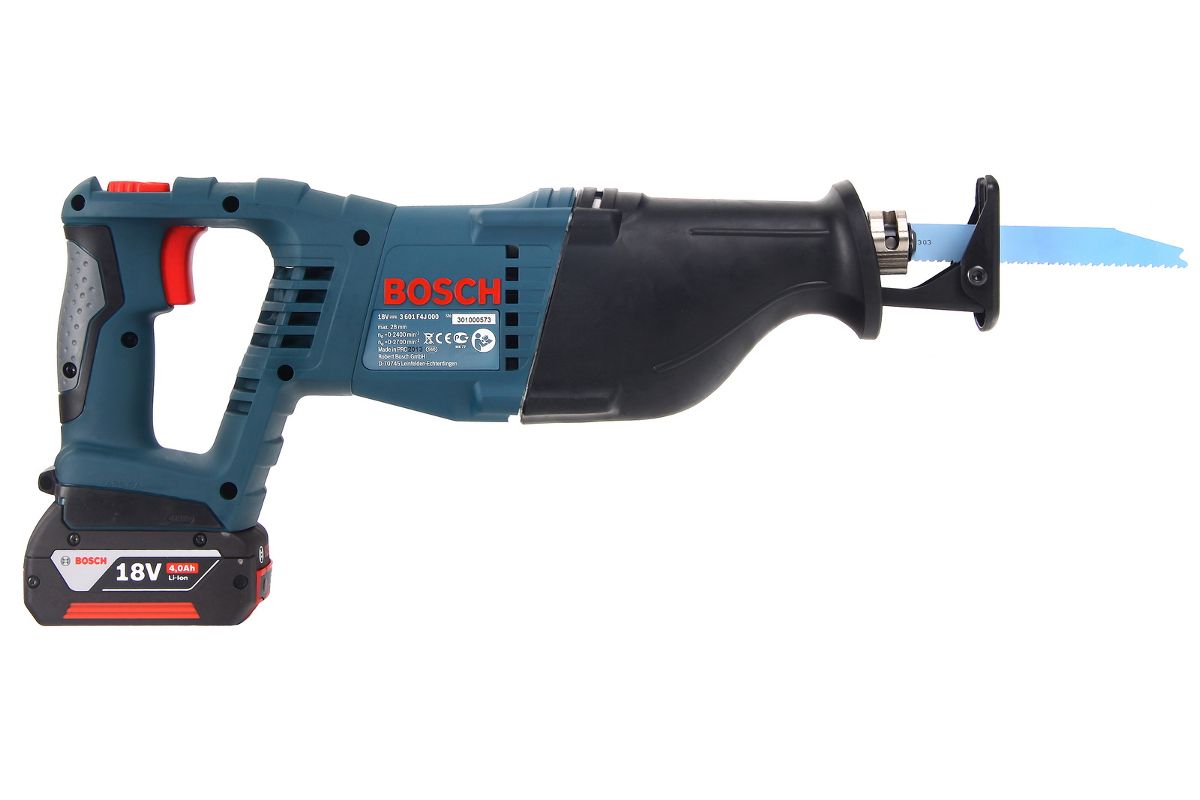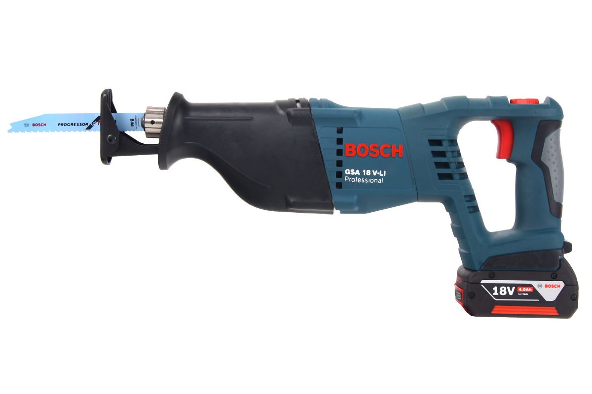 Аккумуляторная ножовка BOSCH GSA 18 V-LI — самый производительный аккумуляторный агрегат в своем классе. Комплектуется 2 литий-ионными 18-вольтными аккумуляторами на 4 Ач (выполнены по технологии CoolPack). Особенности модели: 2 скорости — до 2400 / до 2700 оборотов в минуту; длина хода полотна составляет 28 миллиметров; двигатель, выполненный по технологии EMP (Electronic Motor Protection); SDS-патрон; прорезиненная рукоятка.
