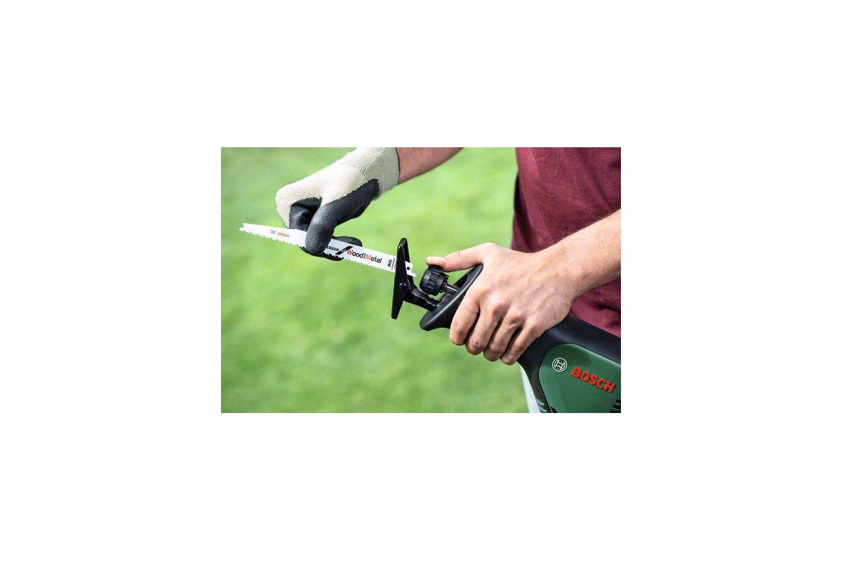Аккумуляторная сабельная пила используется для резки ветвей и дров или подстригания кустов рядом со стенами. Также помогает выполнять глубокие пропилы в древесине, стали, пластмассе, ДСП, резине или гипсокартоне.