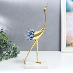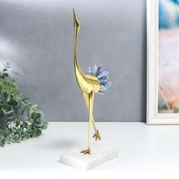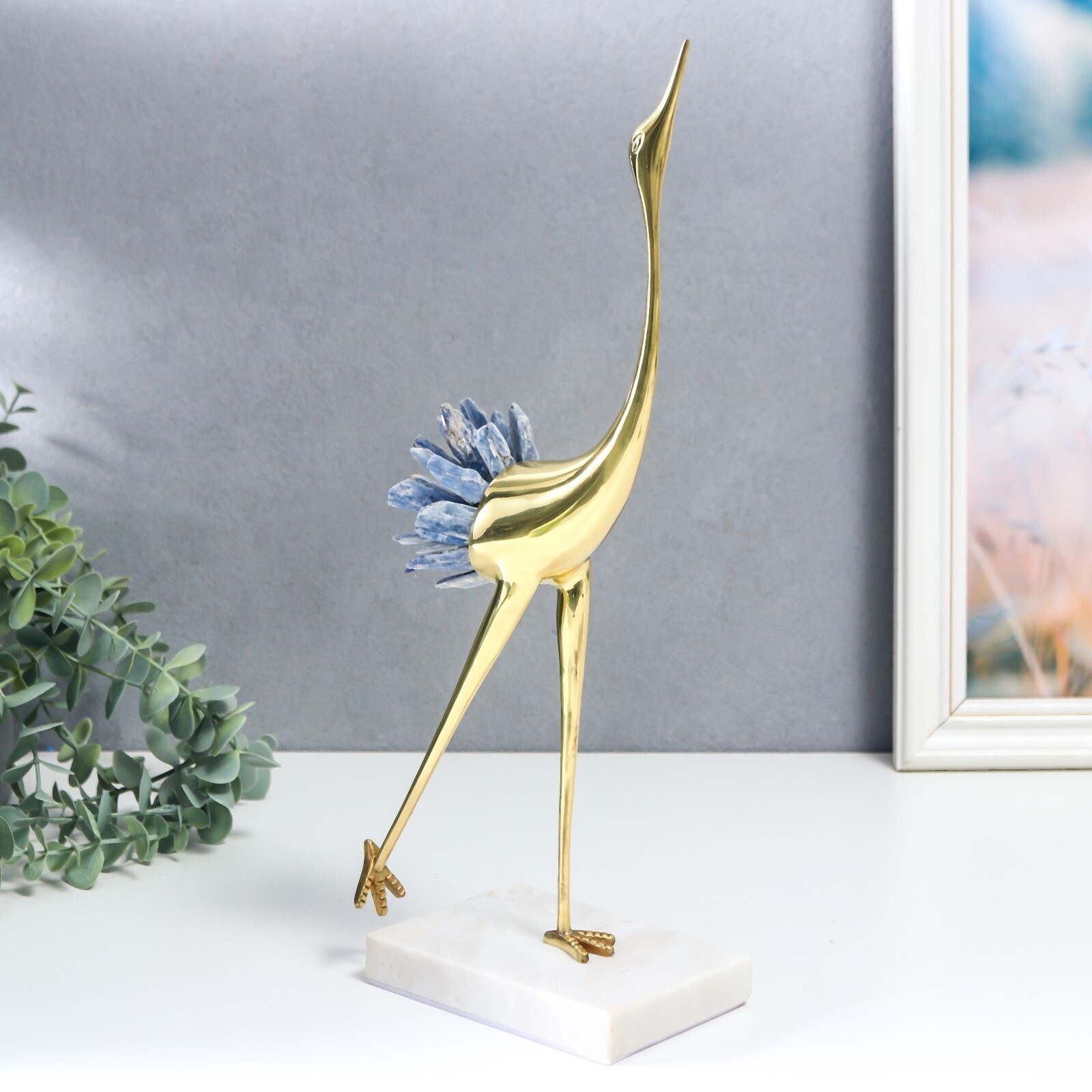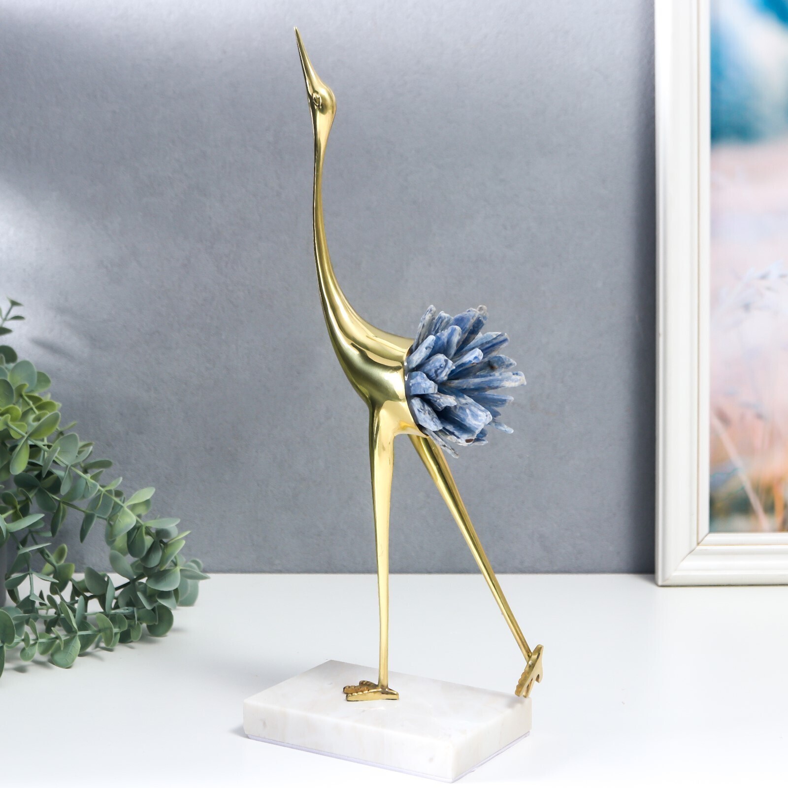 Сувенир интерьерный латунь, кварц "Журавль, хвост из серого агата" 37х19х17 см