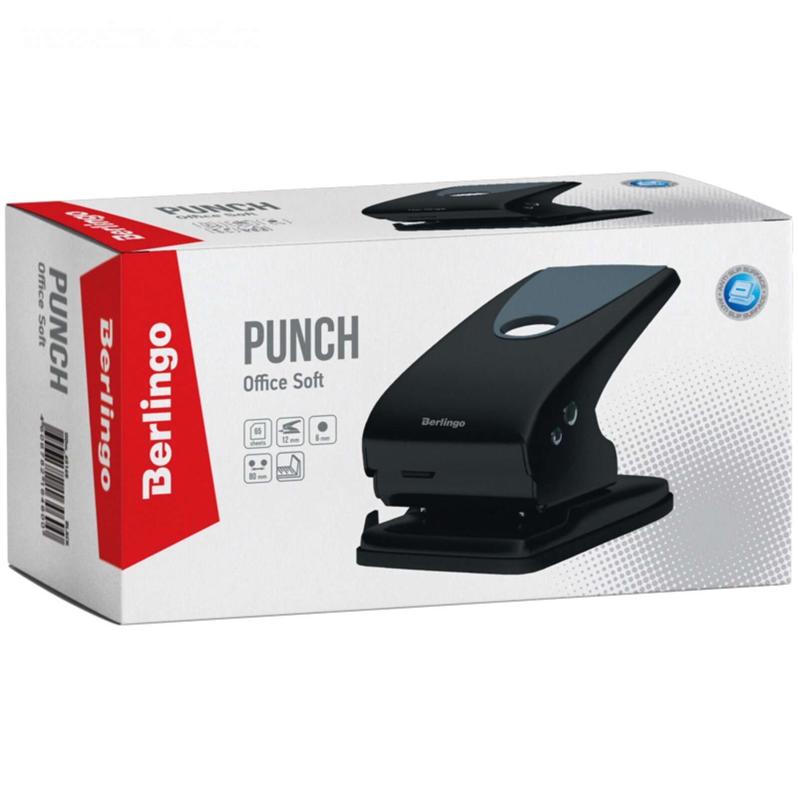 Дырокол металлический 65 листов, Office Soft, с линейкой, чёрный