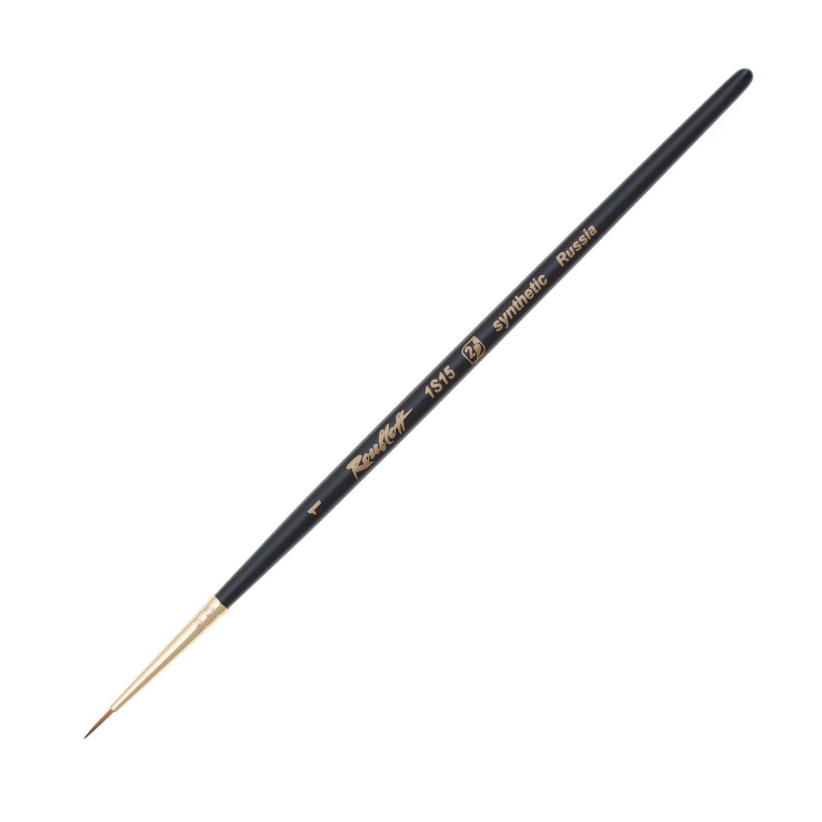 Кисть Синтетика, имитация колонка, круглая, Roubloff серия 1S15 № 1, ручка короткая чёрная матовая, жёлтая обойма
